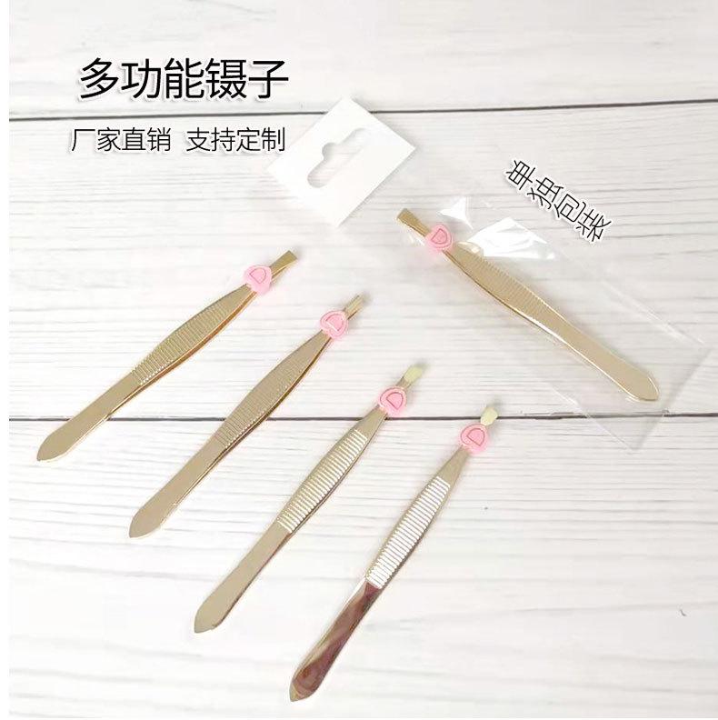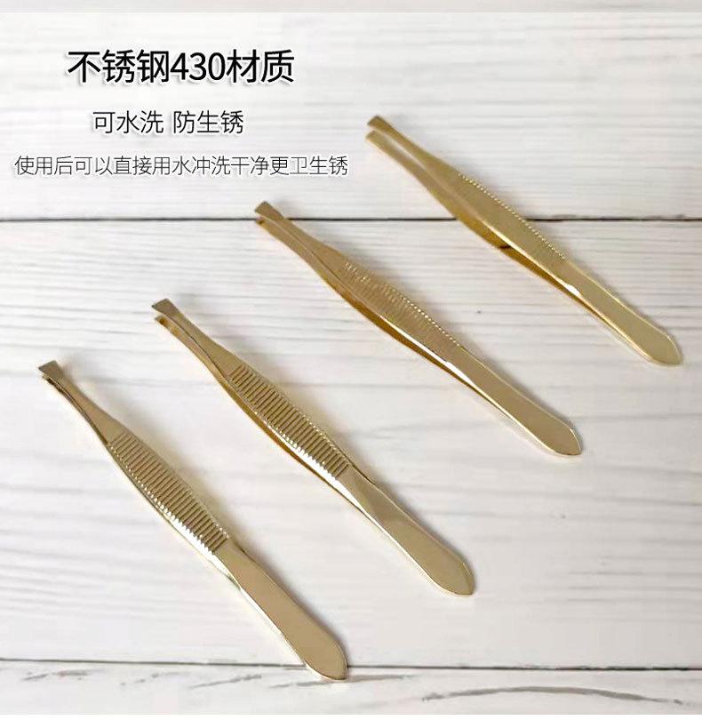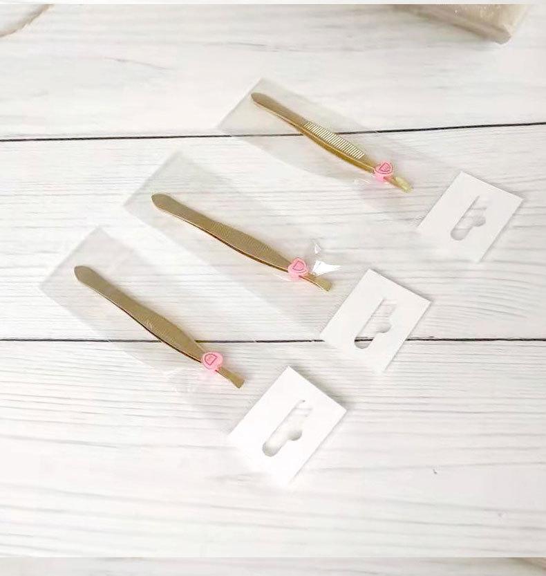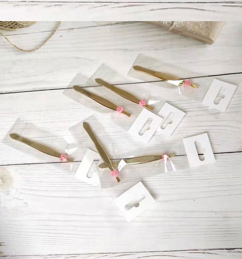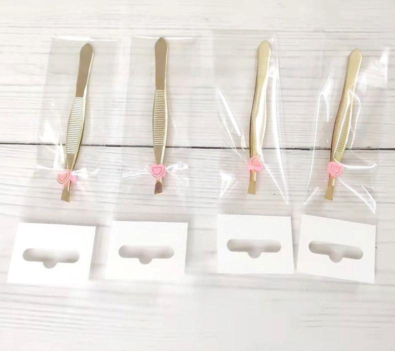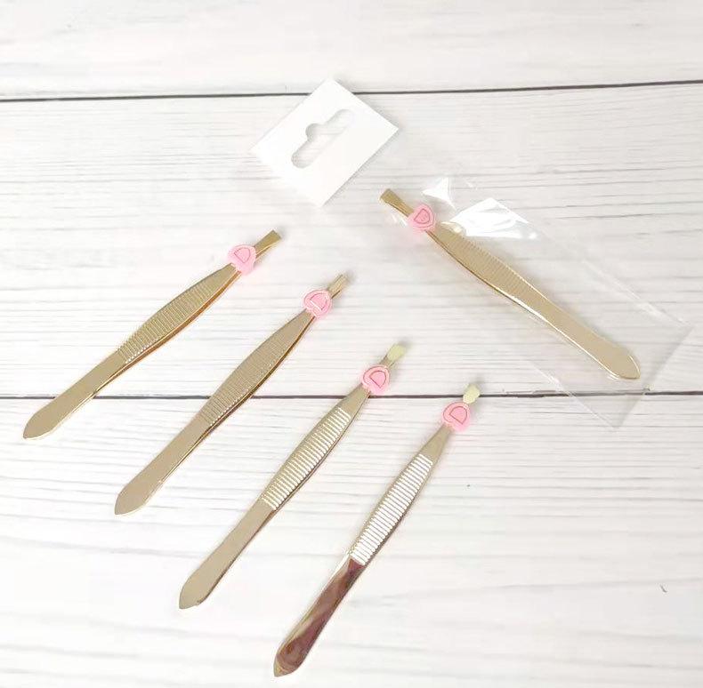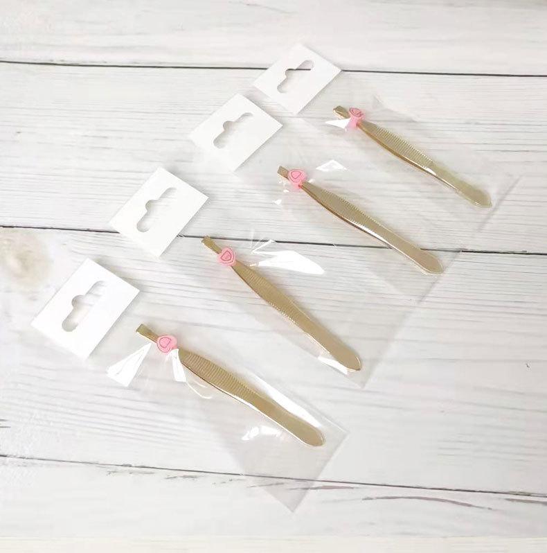 Pinza para cejas de acero inoxidable dorada, bolsa de polipropileno, pinza para depilar cejas, pinza para cejas planas oblicuas, pinza para recortar cejas, pinza para depilar barba.