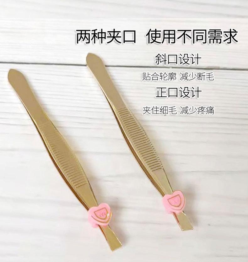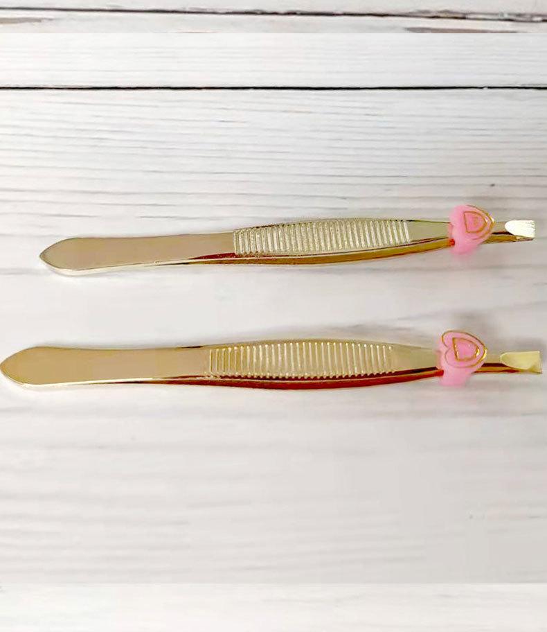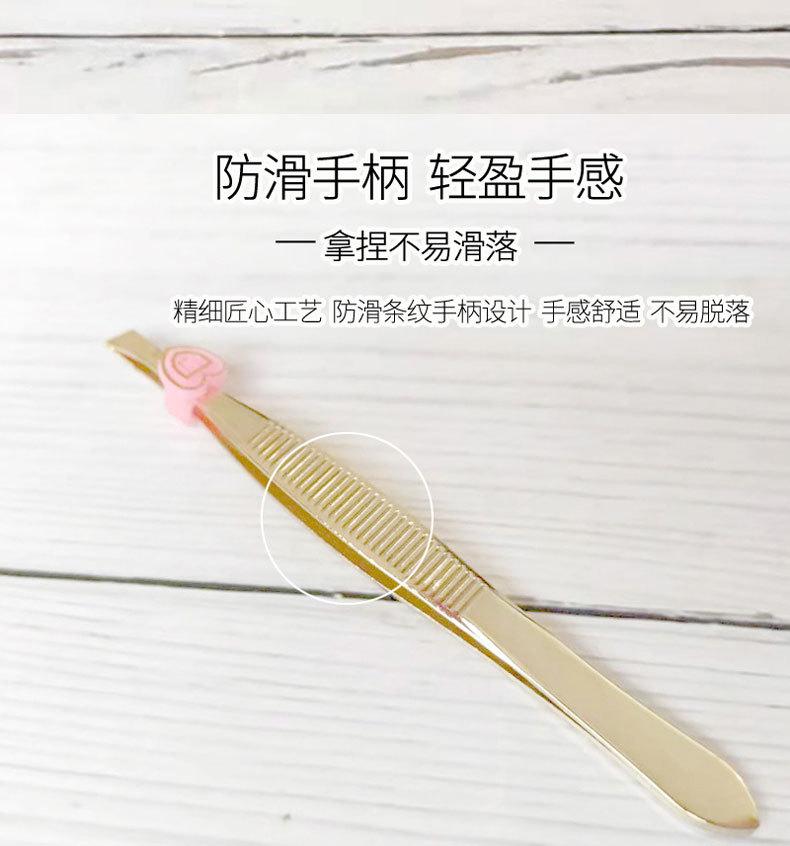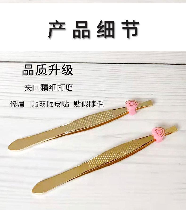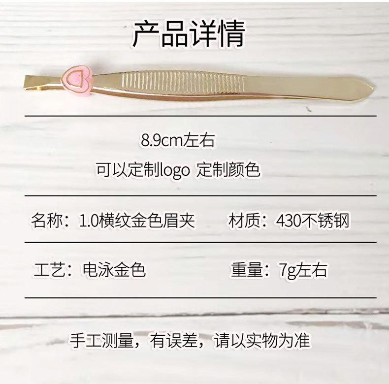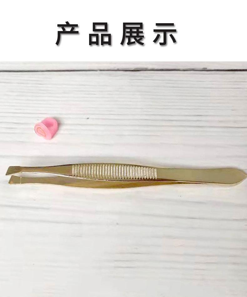 Pinza para cejas de acero inoxidable dorada, bolsa de polipropileno, pinza para depilar cejas, pinza para cejas planas oblicuas, pinza para recortar cejas, pinza para depilar barba.