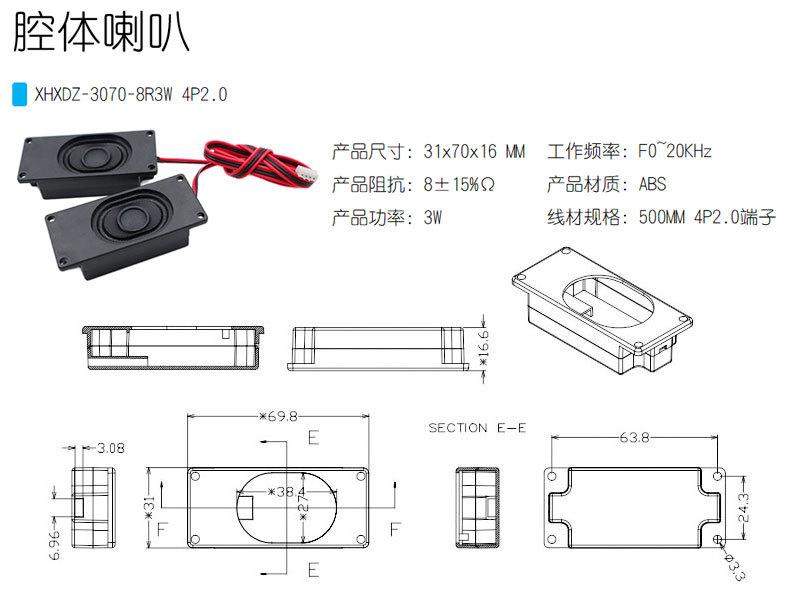 3070 Cavidad CAJA Bocina 4R/8 Euro 3 Vatios Máquina Publicitaria Altavoz Bocina Todo en Uno 2P/4P Terminal 2.0