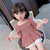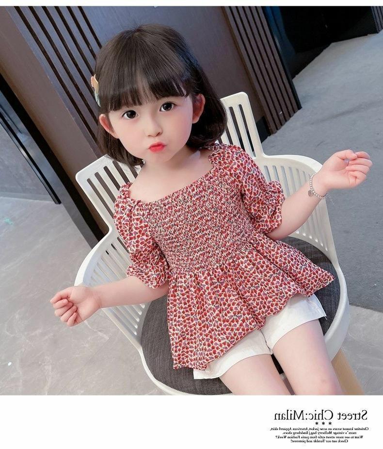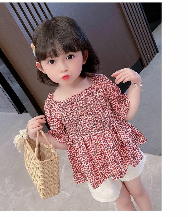 Traje de verano para niñas Bebé en línea Popular Personalidad Infantil Moderno Estilo Coreano Floral Plisado Camisa de Muñeca Camiseta Shorts