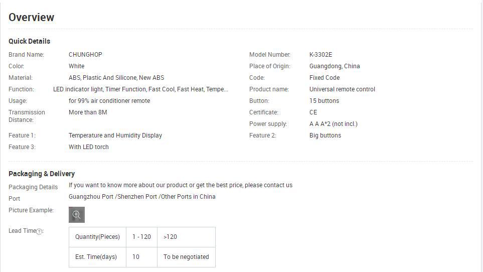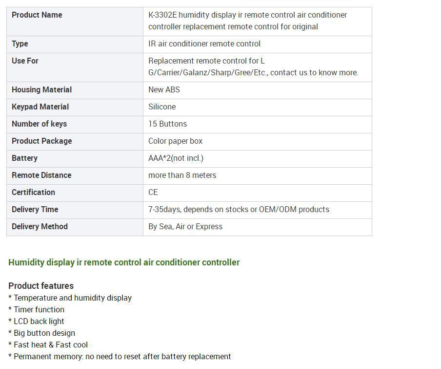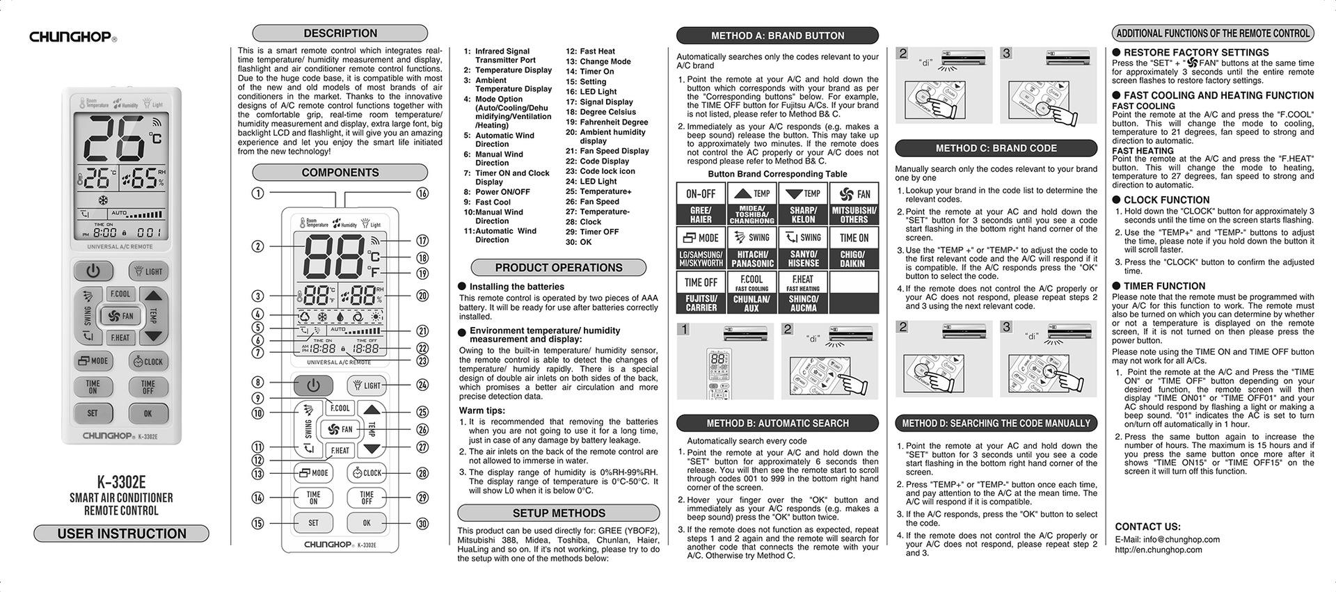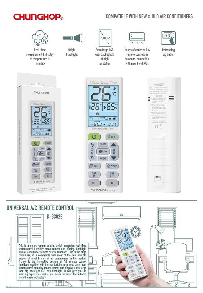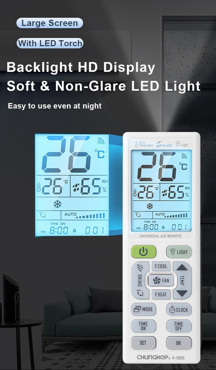 Chunghop Fabricante de Comercio Exterior Original Inglés Universal Control Remoto para Aire Acondicionado con Pantalla de Temperatura y Humedad Venta al por Mayor Inteligente