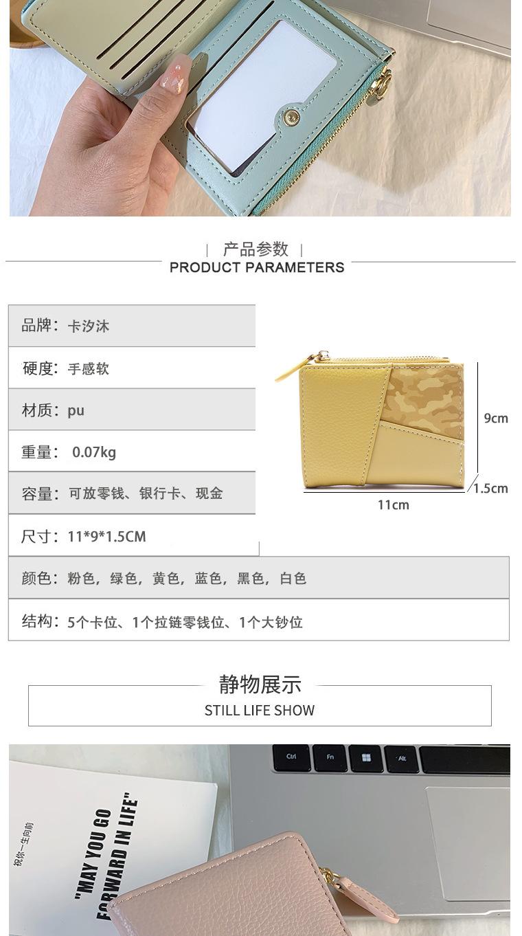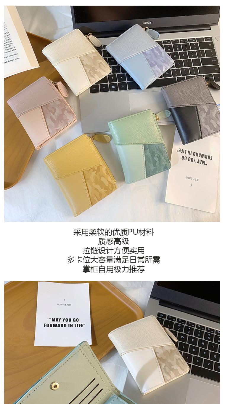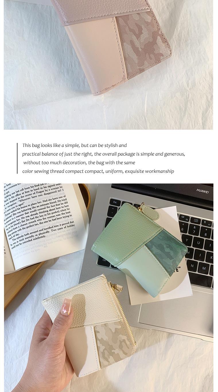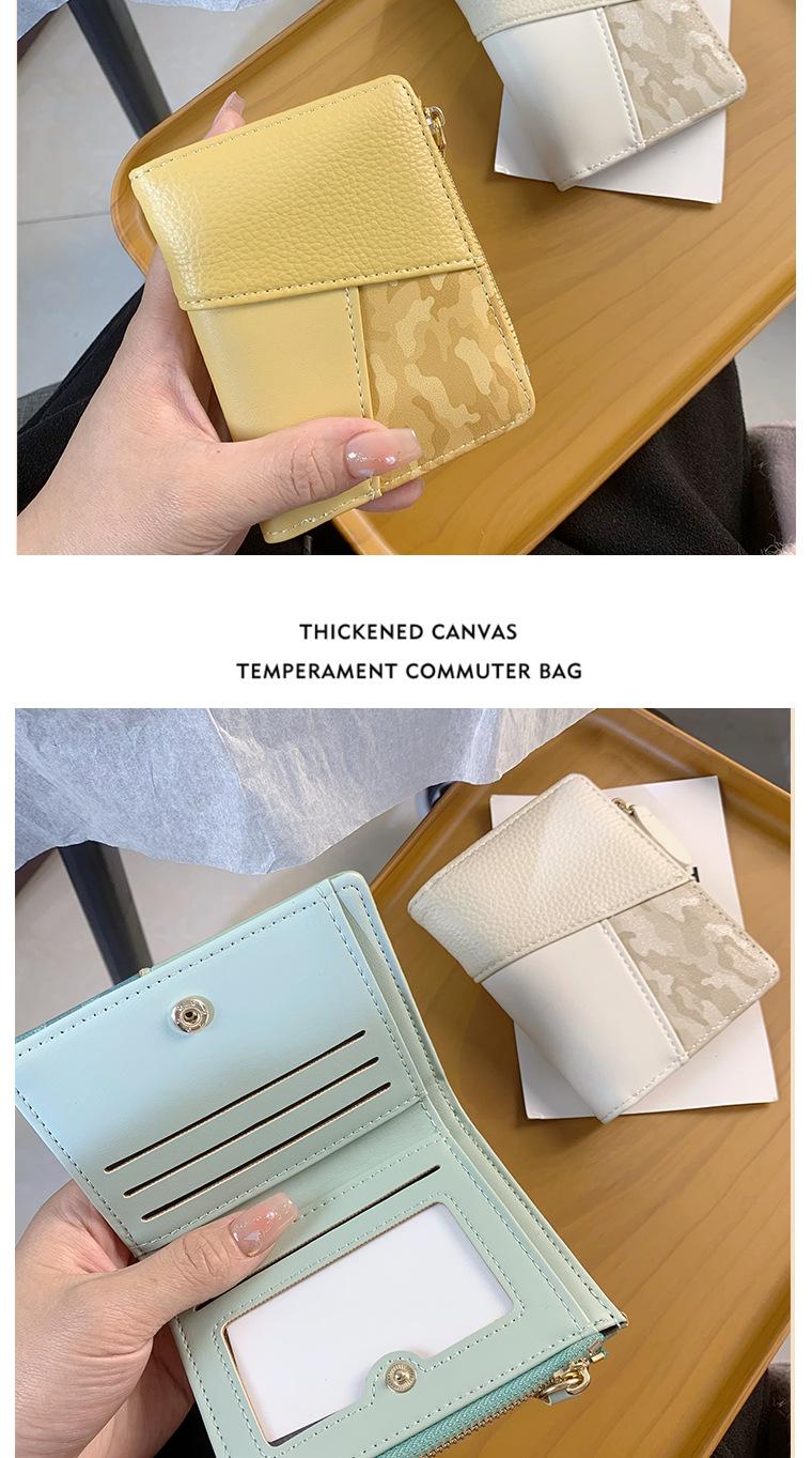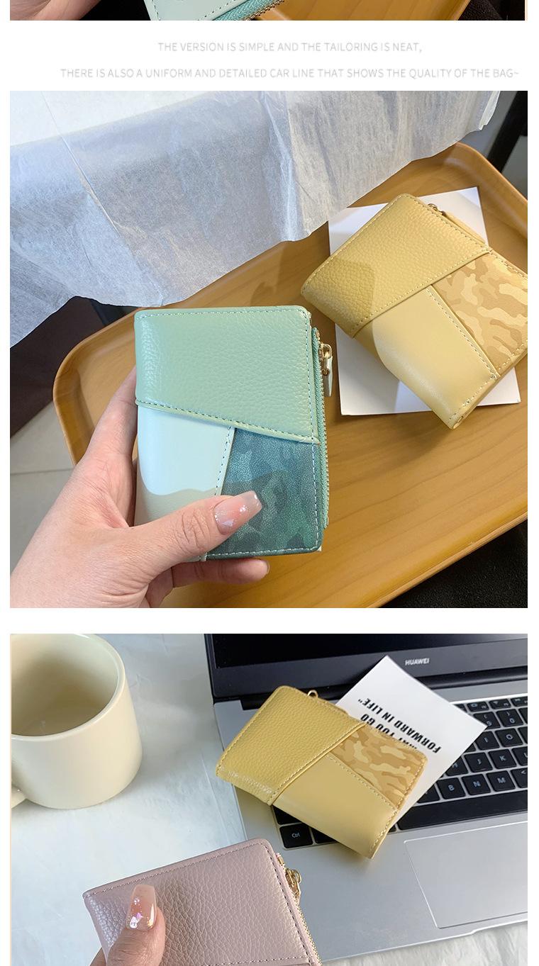 Nuevo monedero de PU con costuras de color, cartera con cremallera multitarjeta de moda, cartera corta cruzada para mujer