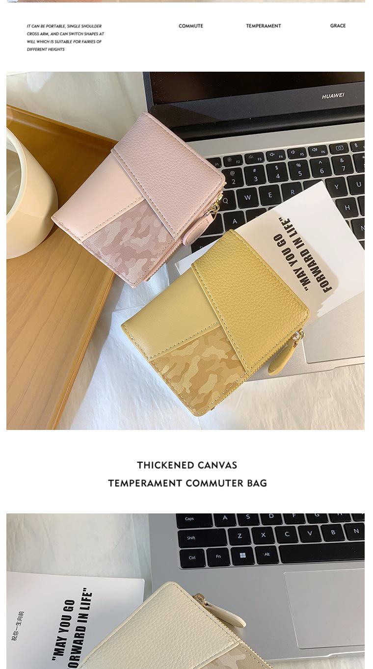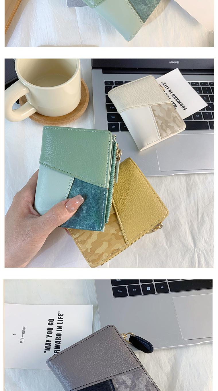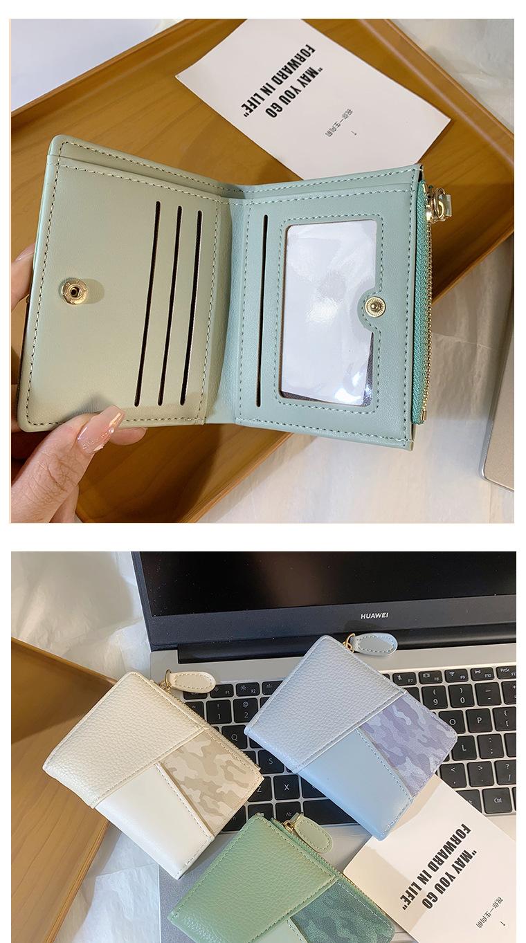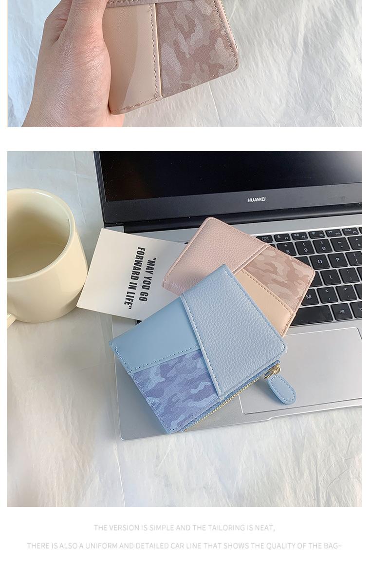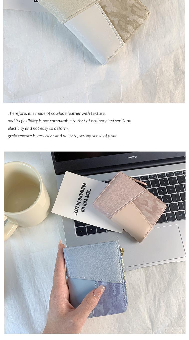 Nuevo monedero de PU con costuras de color, cartera con cremallera multitarjeta de moda, cartera corta cruzada para mujer