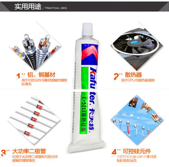 Limpie la superficie a recubrir, elimine las manchas de aceite y luego extruya la silicona térmicamente conductora directamente para recubrir la superficie a recubrir uniformemente. El método de recubrimiento puede ser cepillado, raspado o rodillo según sea necesario.