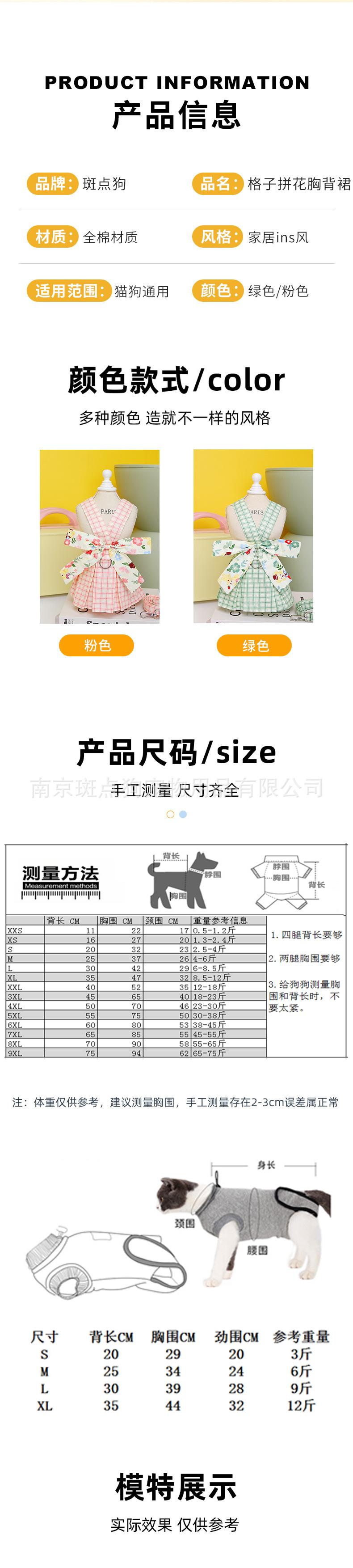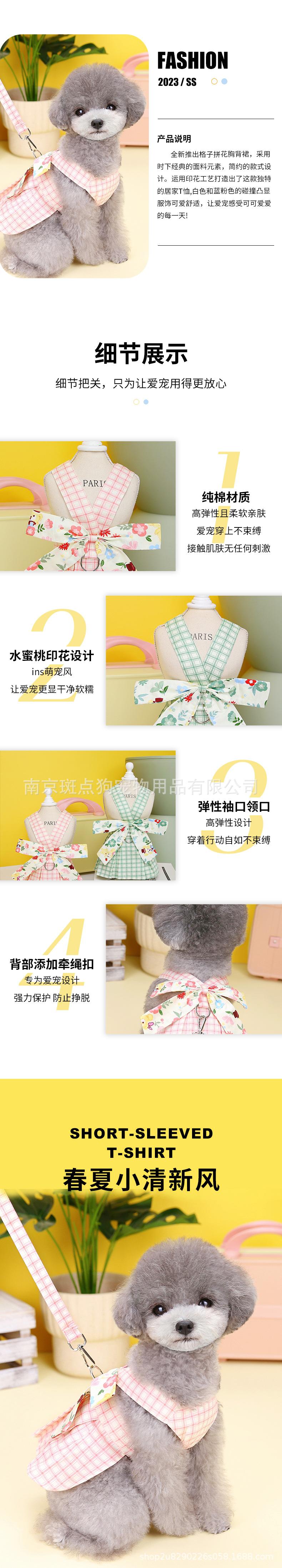 Ropa para Mascotas Pecho Espalda Correa para Perro con Ropa Teddy para Gato Ropa para Mascotas Cuadros Pecho Espalda Falda