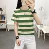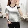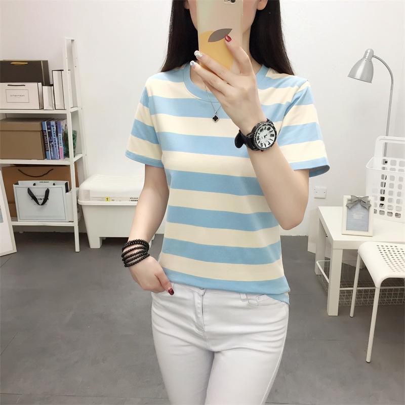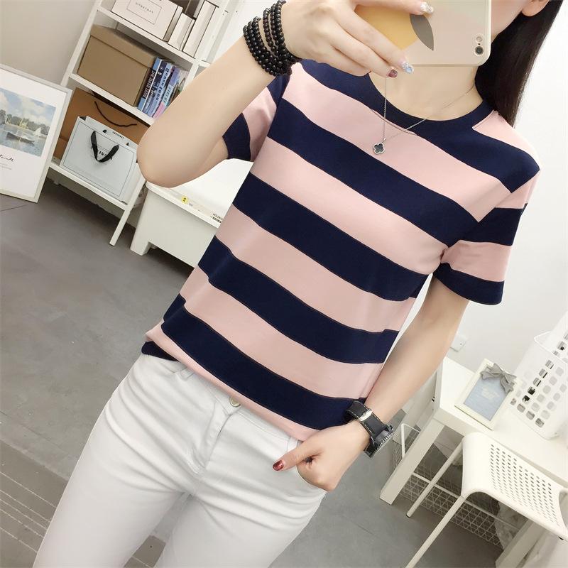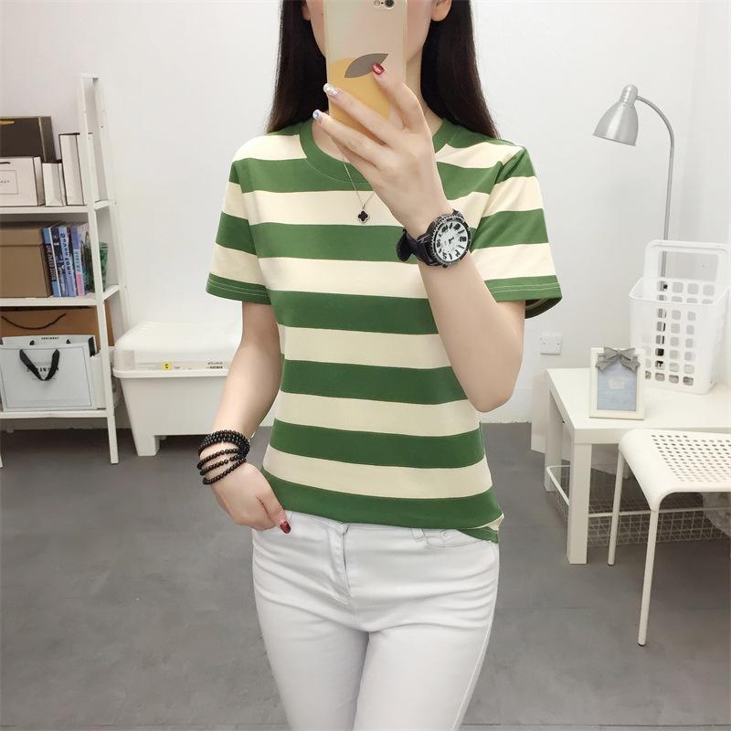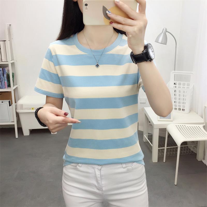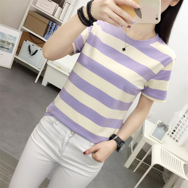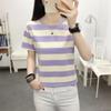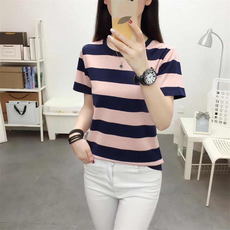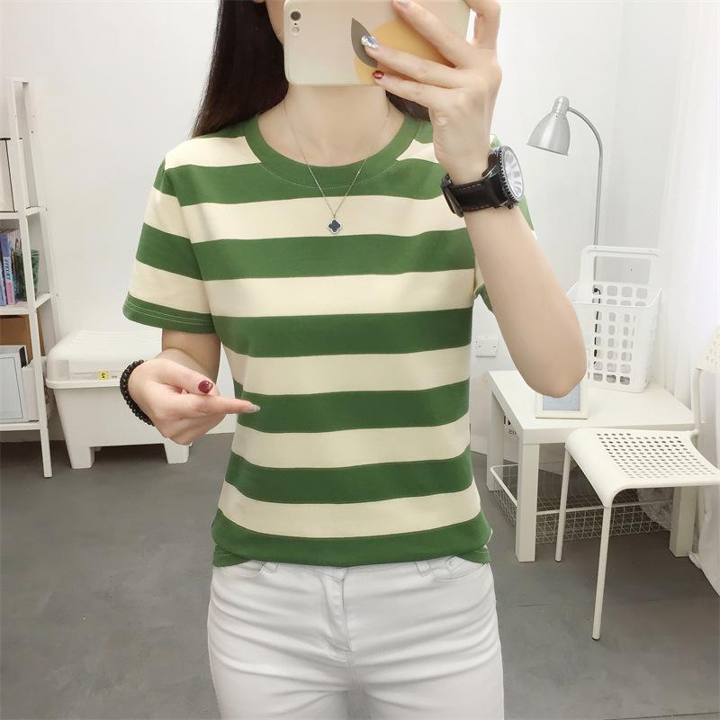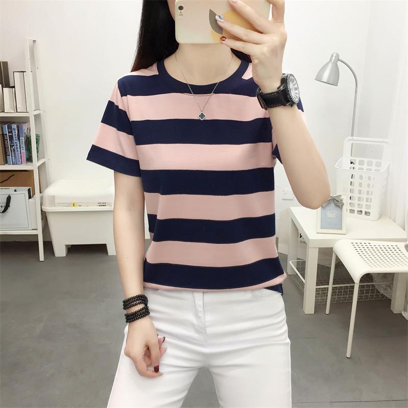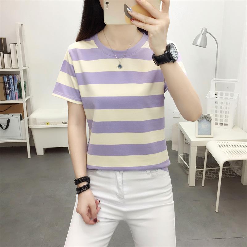 2024 Nuevo Talla Grande Suelto Adelgazante Algodón Manga Corta Camiseta Mujer Verano Combinable Camiseta Top Rayado
