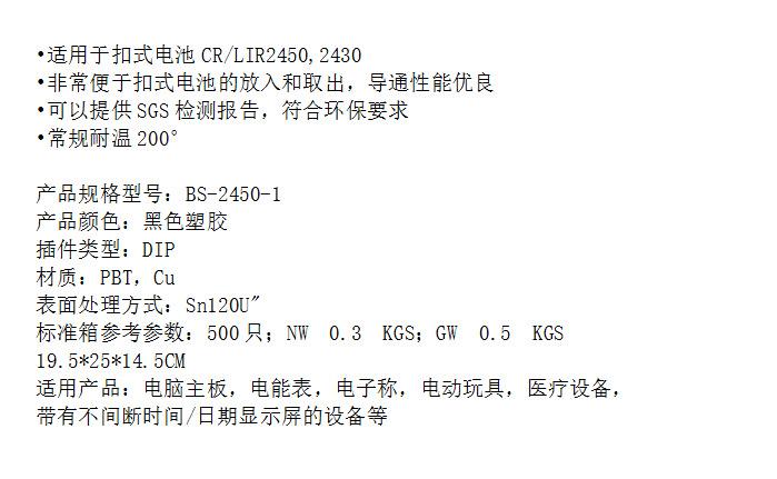 •Adecuado para pila de botón CR/LIR2450,2430