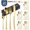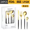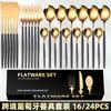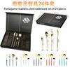 Suministro transfronterizo de vajilla de acero inoxidable Portugal 30 piezas traje chapado en oro cuchillo para carne occidental, tenedor y cuchara caja de regalo traje
