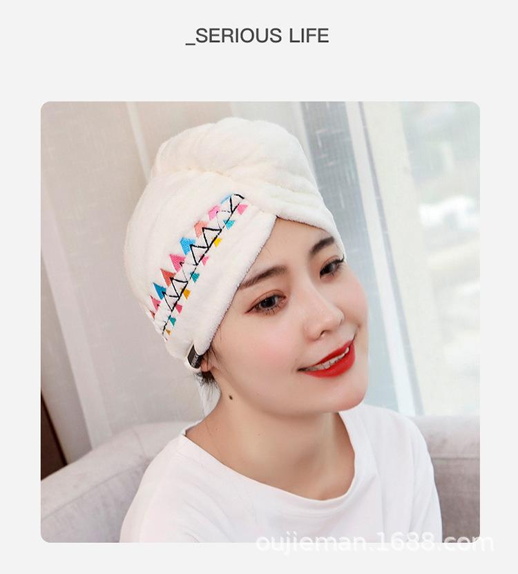 Exquisito bordado gorro grueso para cabello seco absorbente de secado rápido suave fábrica al por mayor toalla para el cabello toalla para el cabello