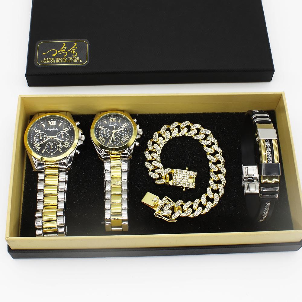 Reloj de pulsera para pareja, caja de pulsera de diamantes, conjunto de reloj para pareja, reloj para hombre, reloj para mujer