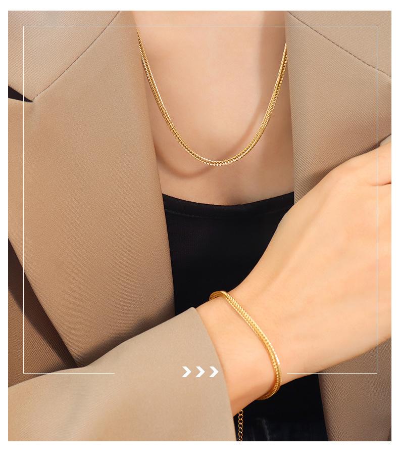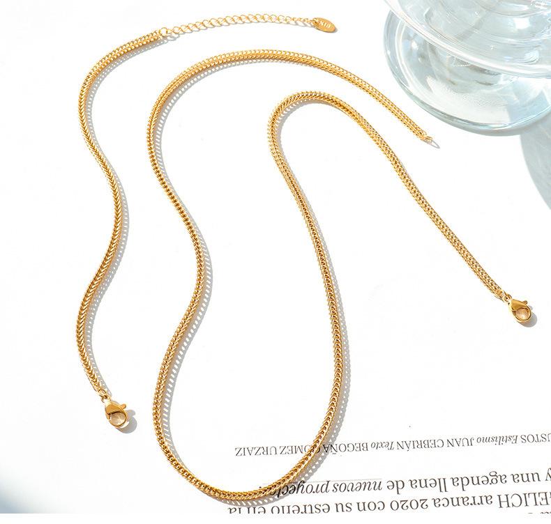 Compra Marca Cadena Hueca de Metal Francés Collar de Cadena Fina Cadena Clavícula Pulsera de Acero de Titanio Joyería Traje para Niñas al por mayor en Joom.pro