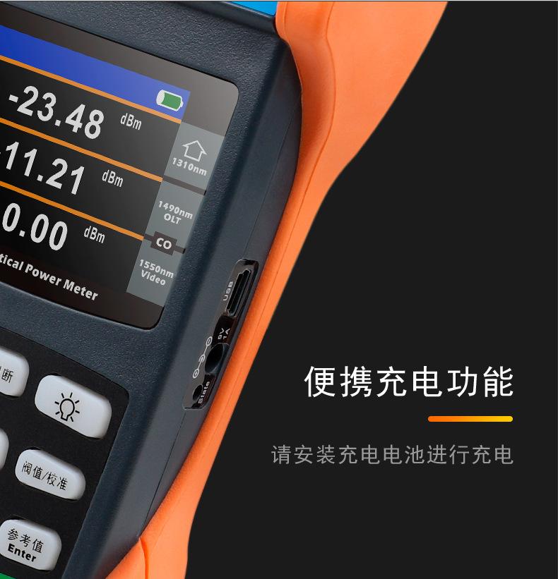 Medidor de potencia óptica PON serie EPN80 de Shanghai Xinsi con fuente de luz roja, ligero, compacto, recargable, apagado automático.