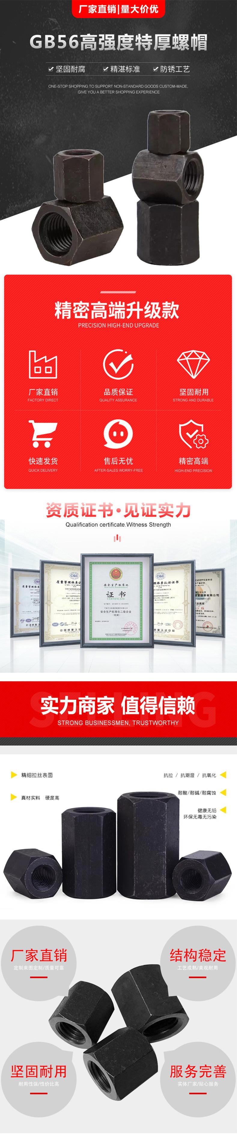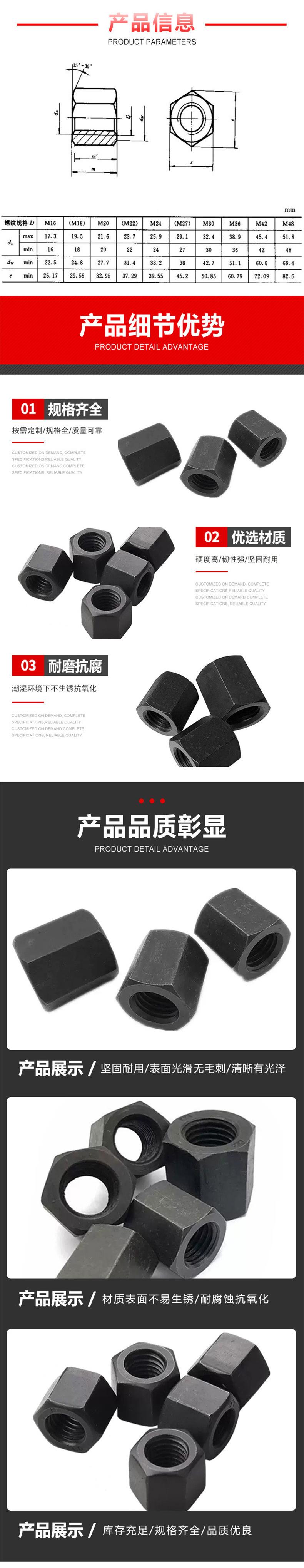 Grado 4 Gb55 Acero al Carbono Negro Tuerca Hexagonal Tuerca Alargada y Engrosada Fabricante Venta al por Mayor M10M12M16M18