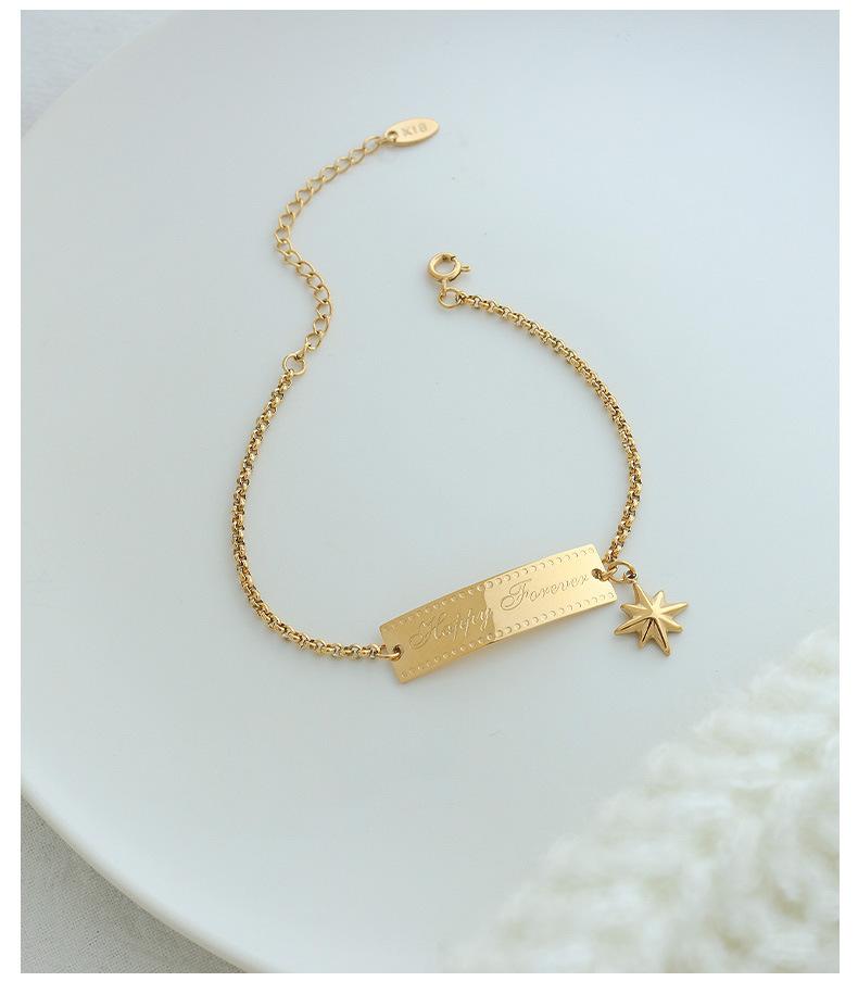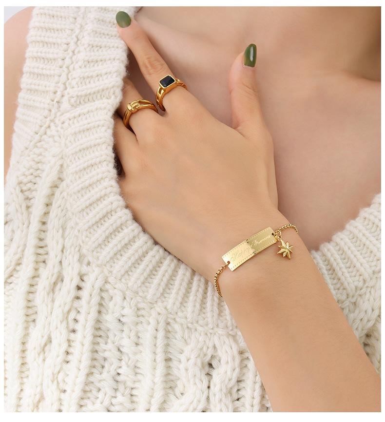 Compra Pulsera Europea y Americana Diseño de Nicho Sentido Pin Bamang Estrella Cuadrada Marca Colgante Letra Inglesa Pulsera ins Frío E106 al por mayor en Joom.pro