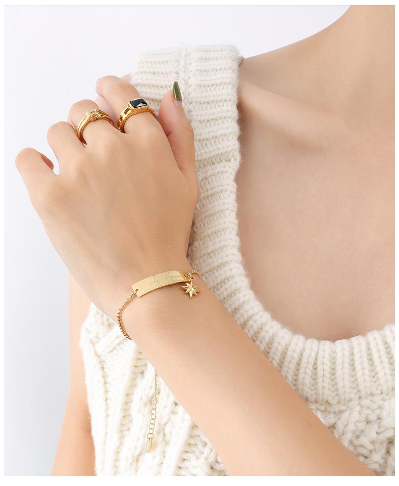 Pulsera Europea y Americana Diseño de Nicho Sentido Pin Bamang Estrella Cuadrada Marca Colgante Letra Inglesa Pulsera ins Frío E106