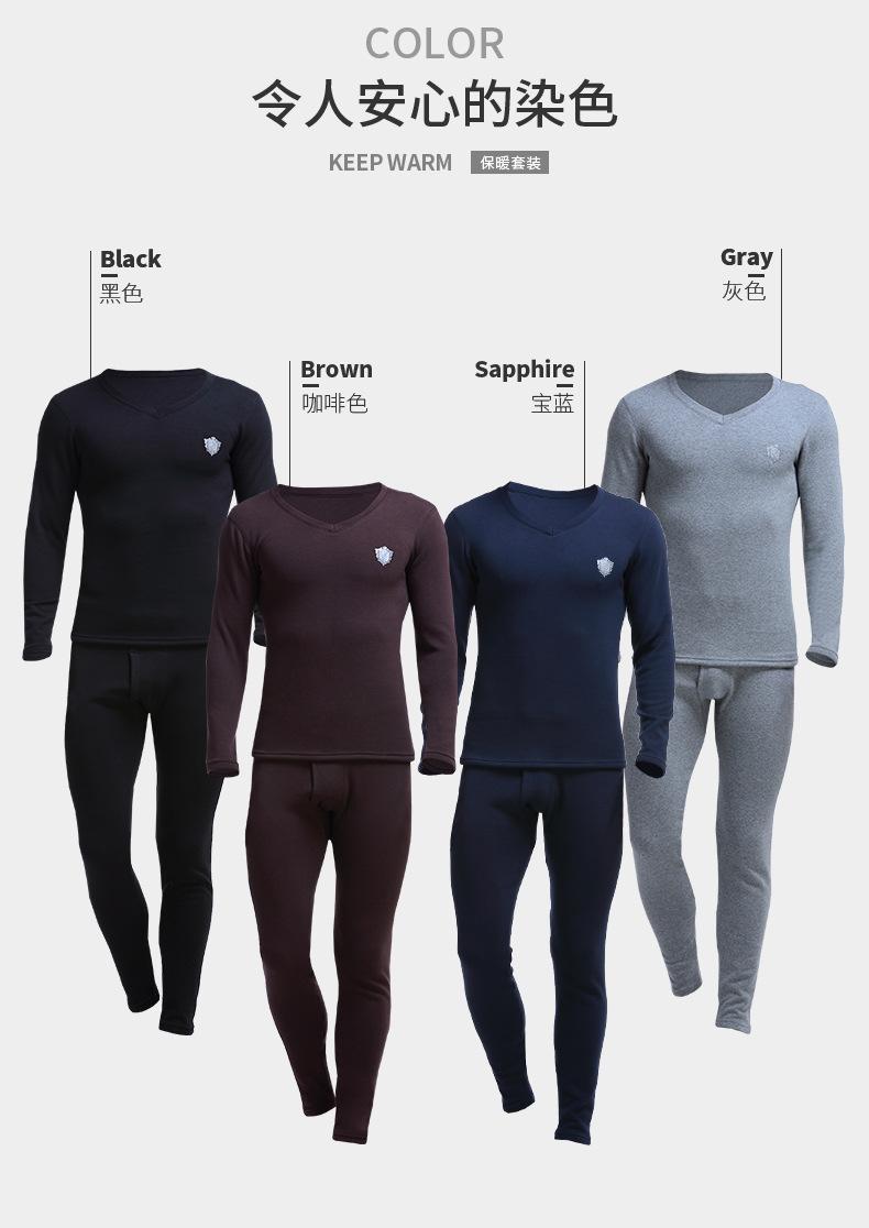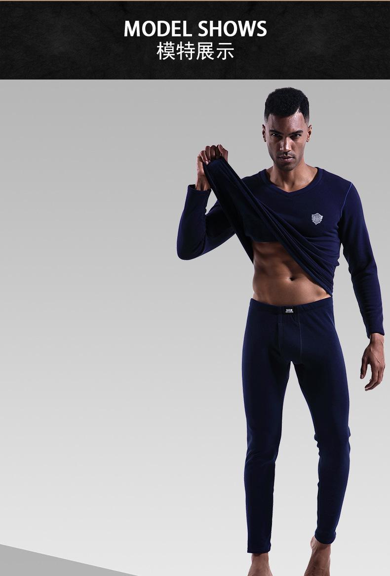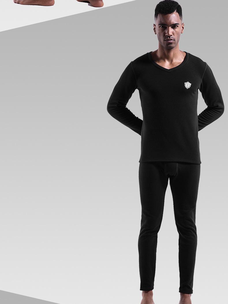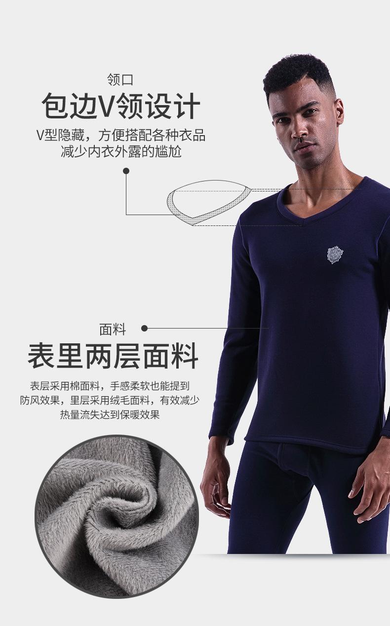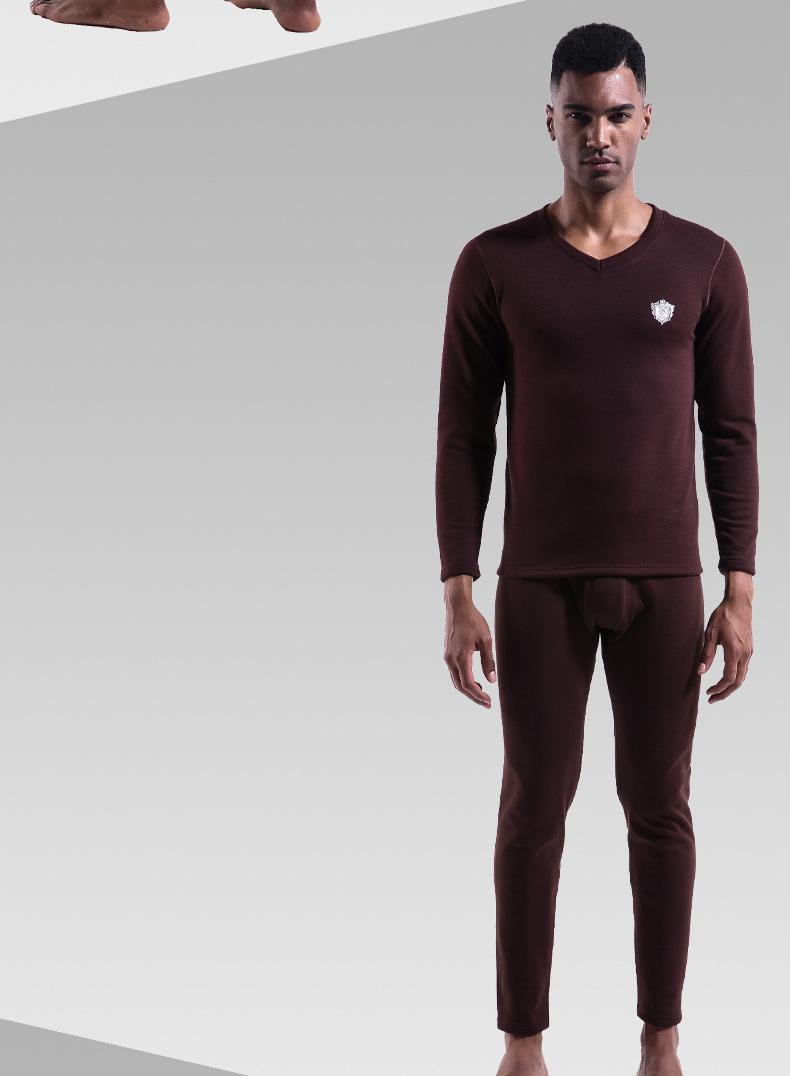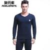Ropa interior térmica de otoño e invierno para hombre, ropa y pantalones de otoño con cuello en V y forro polar grueso, suéter de algodón ajustado de cuello bajo a prueba de frío.