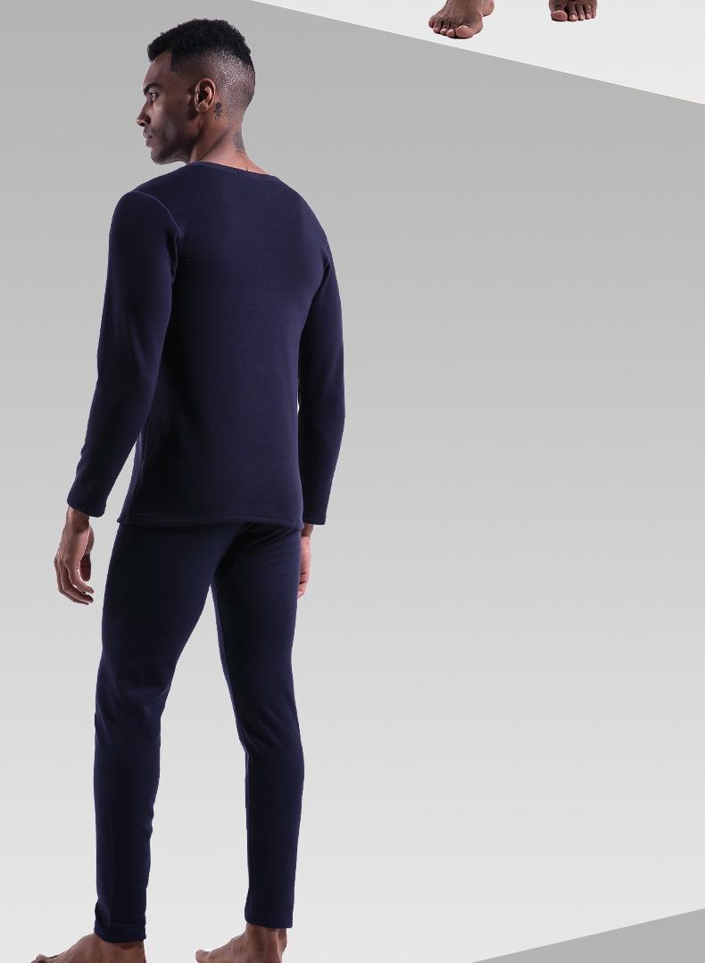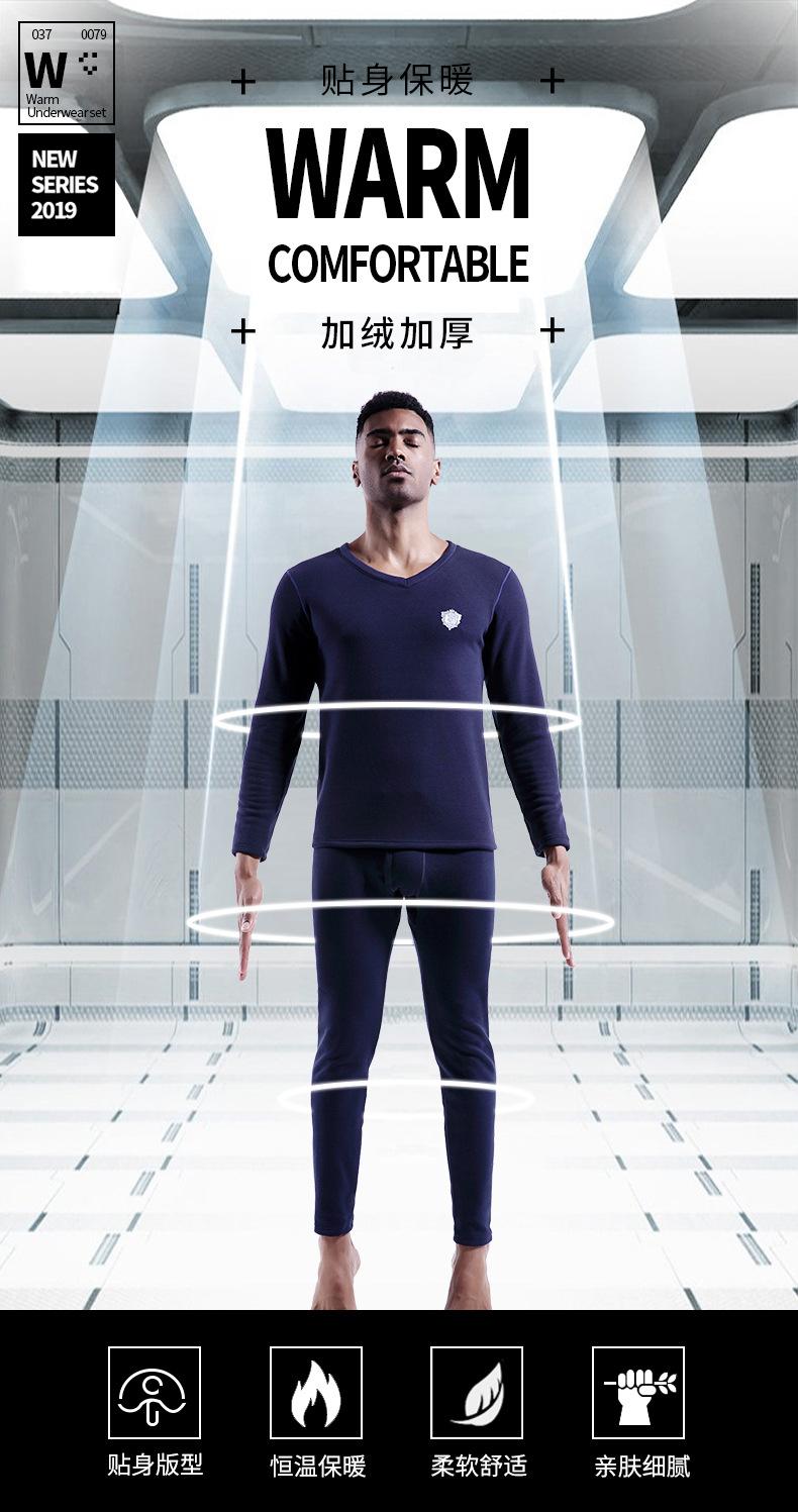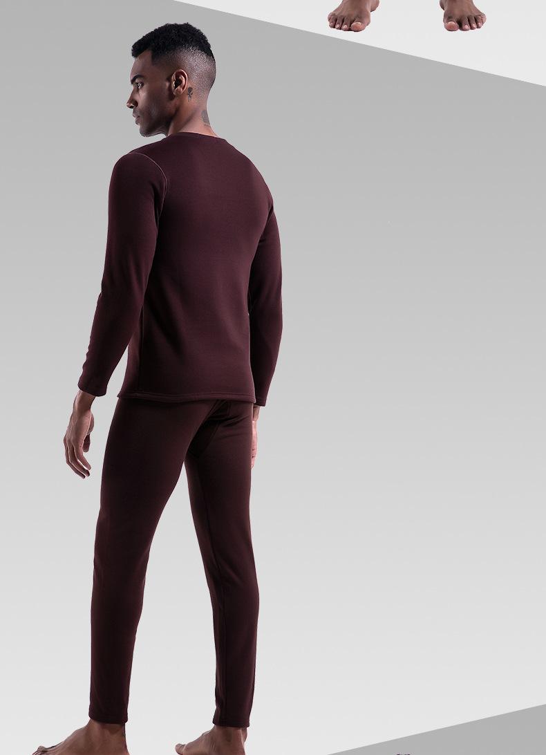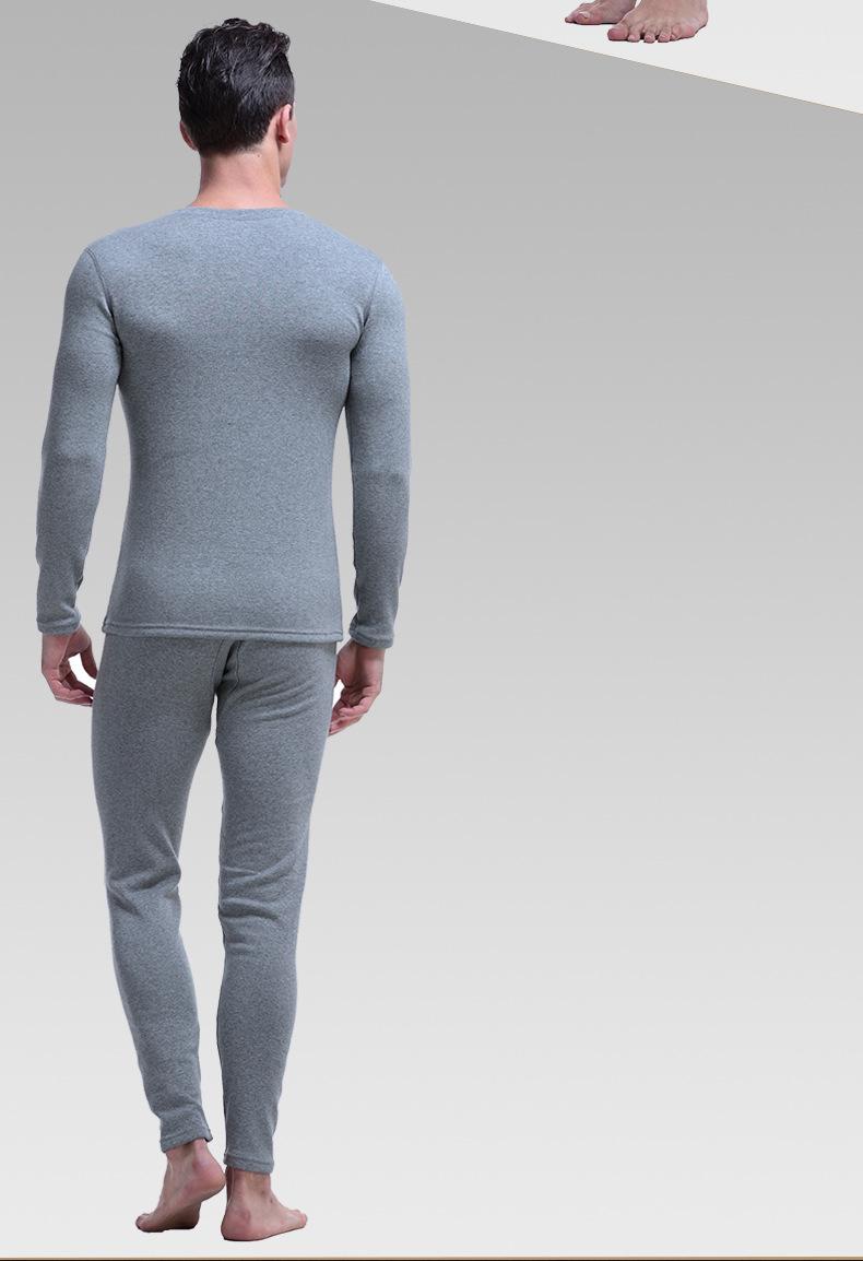 Ropa interior térmica de otoño e invierno para hombre, ropa y pantalones de otoño con cuello en V y forro polar grueso, suéter de algodón ajustado de cuello bajo a prueba de frío.