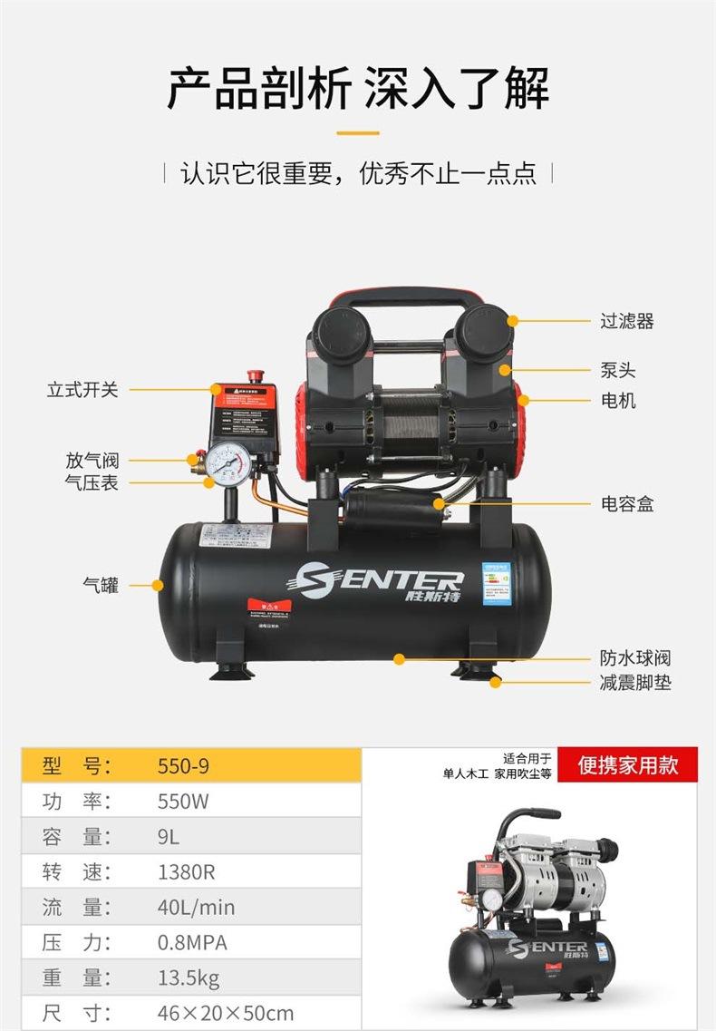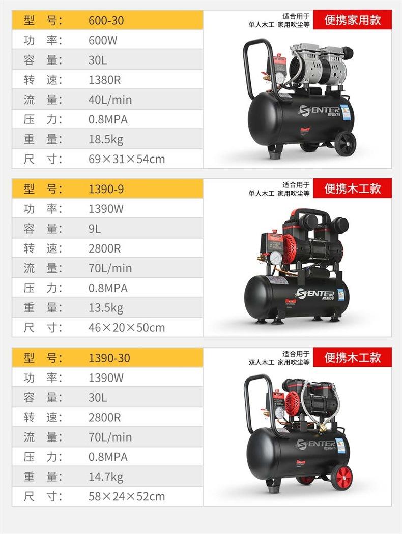 Compresor de aire Shengster, bomba de aire de bajos sin aceite, compresor de aire portátil pequeño para el hogar, 220 V, para carpintería