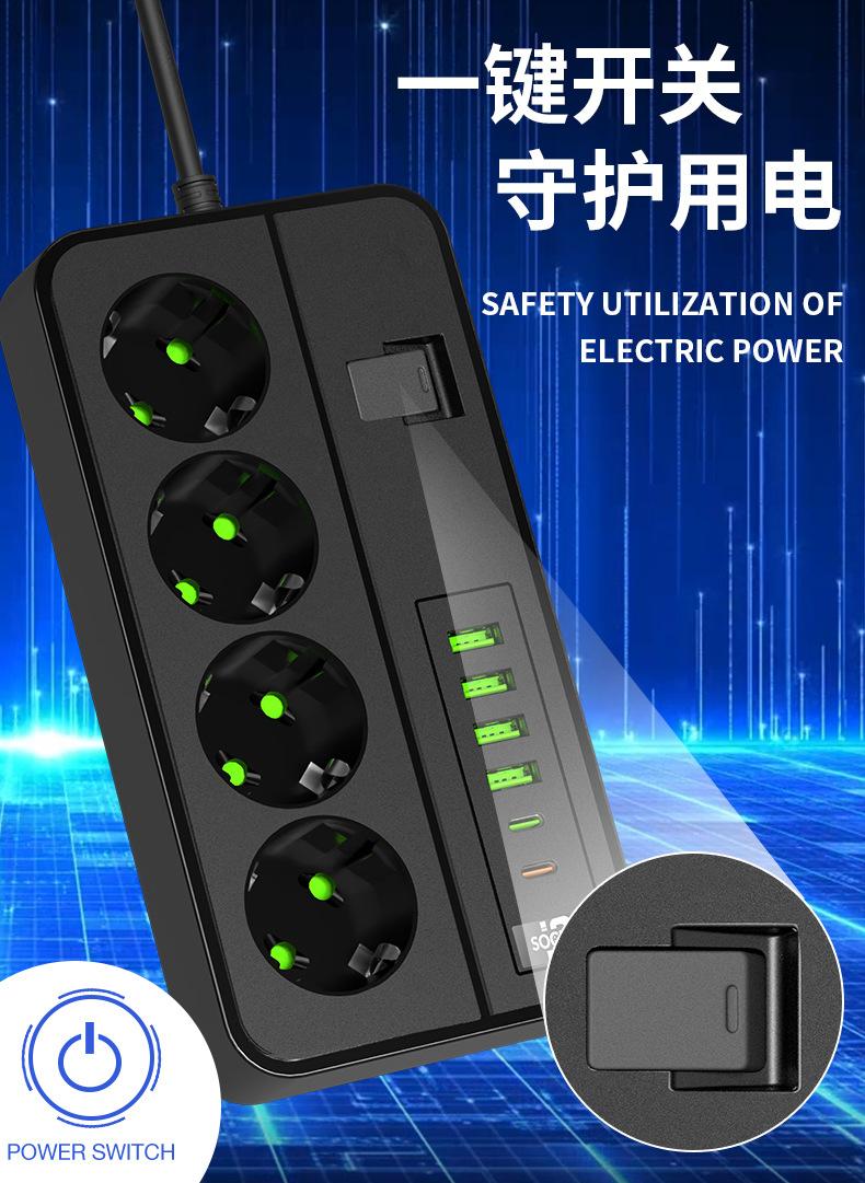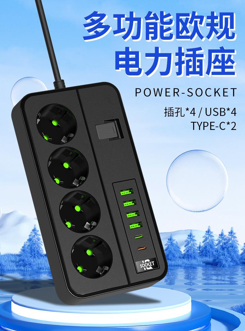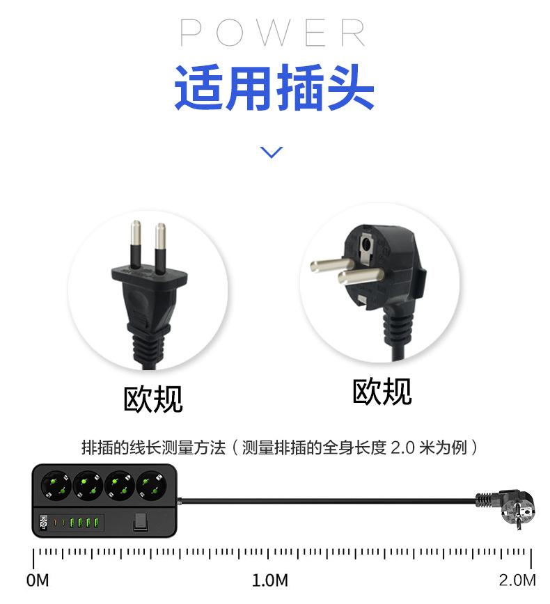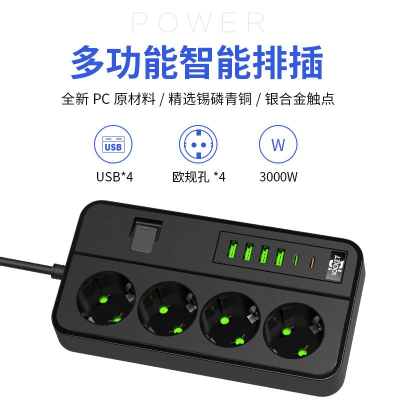 Enchufe europeo de 4 clavijas Enchufe USB multifunción de Corea del Sur con cable 230V regleta enchufe ruso estilo europeo 5 m