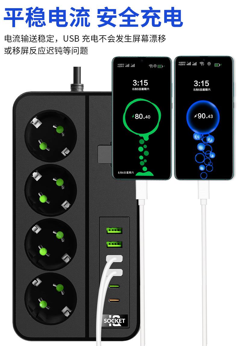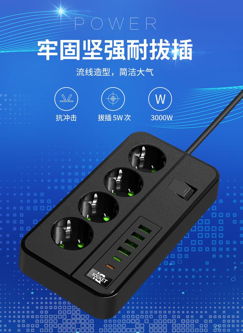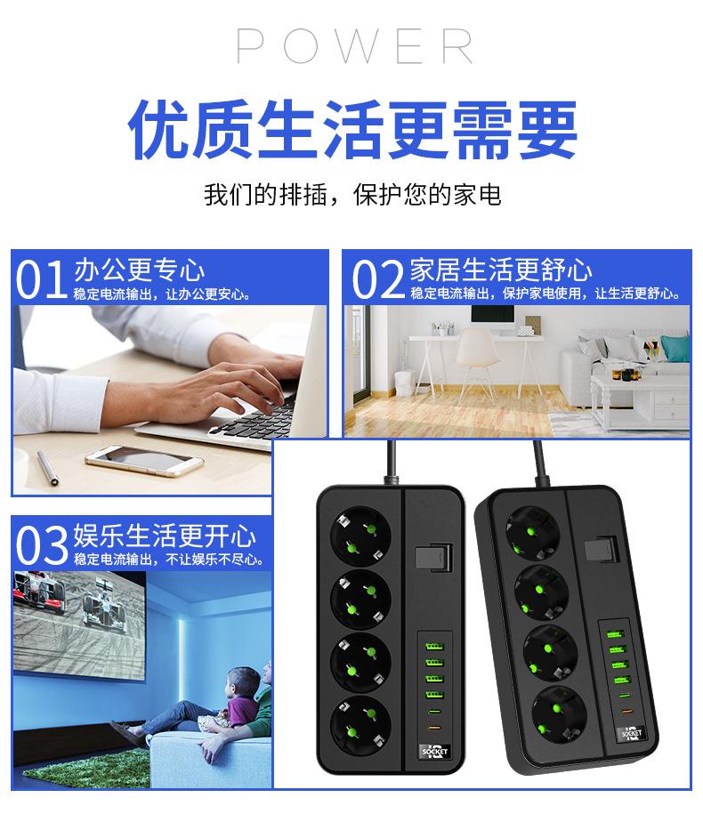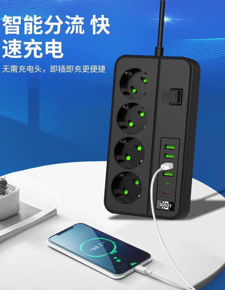 Enchufe europeo de 4 clavijas Enchufe USB multifunción de Corea del Sur con cable 230V regleta enchufe ruso estilo europeo 5 m