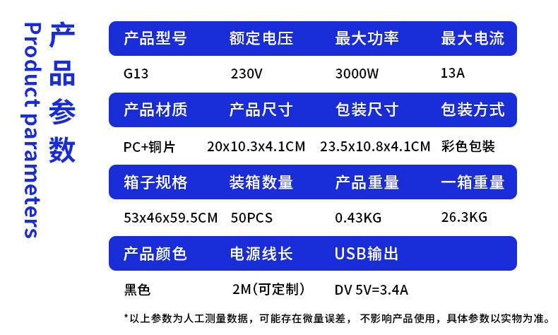 G13 European standard black 3 m (starting from one box, you need to make up the difference, otherwise the default value is 2 m)