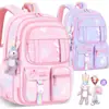 Mochila escolar nueva para estudiantes de primaria, para mujer, con refrigerador, apertura lateral, ligera, de gran capacidad, con reducción de carga, ideal para niños de 1.º a 6.º grado.