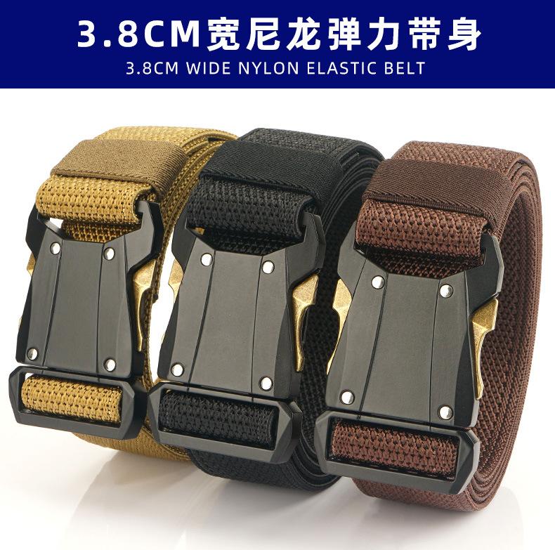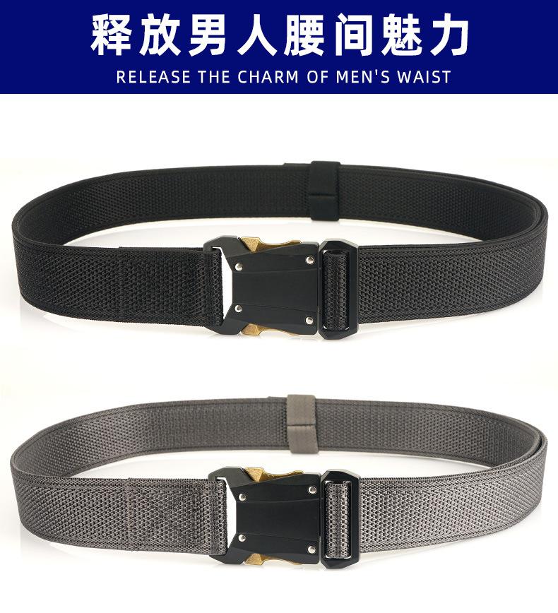 Cinturón táctico de nailon con hebilla rápida para hombre, cinturón interior de lona elástica tejida para entrenamiento al aire libre, ideal para aficionados militares.