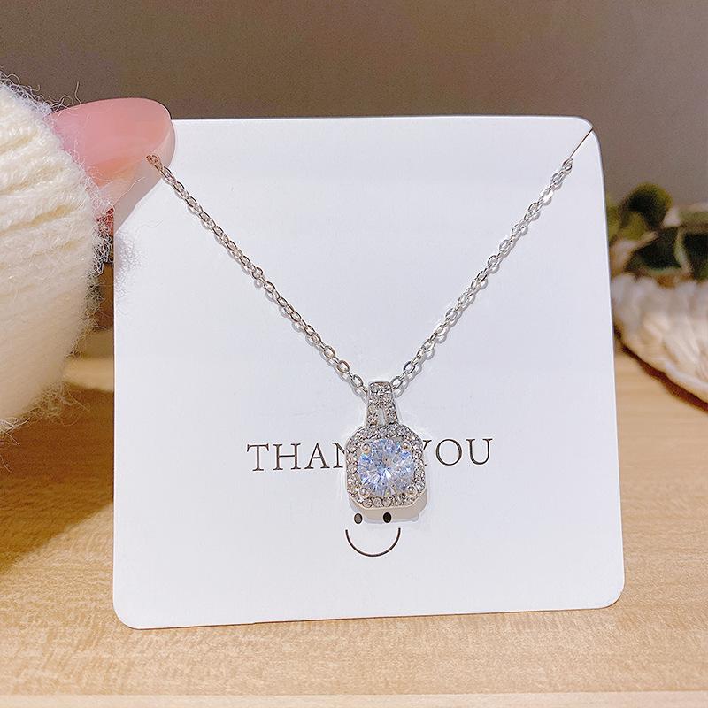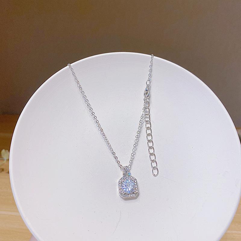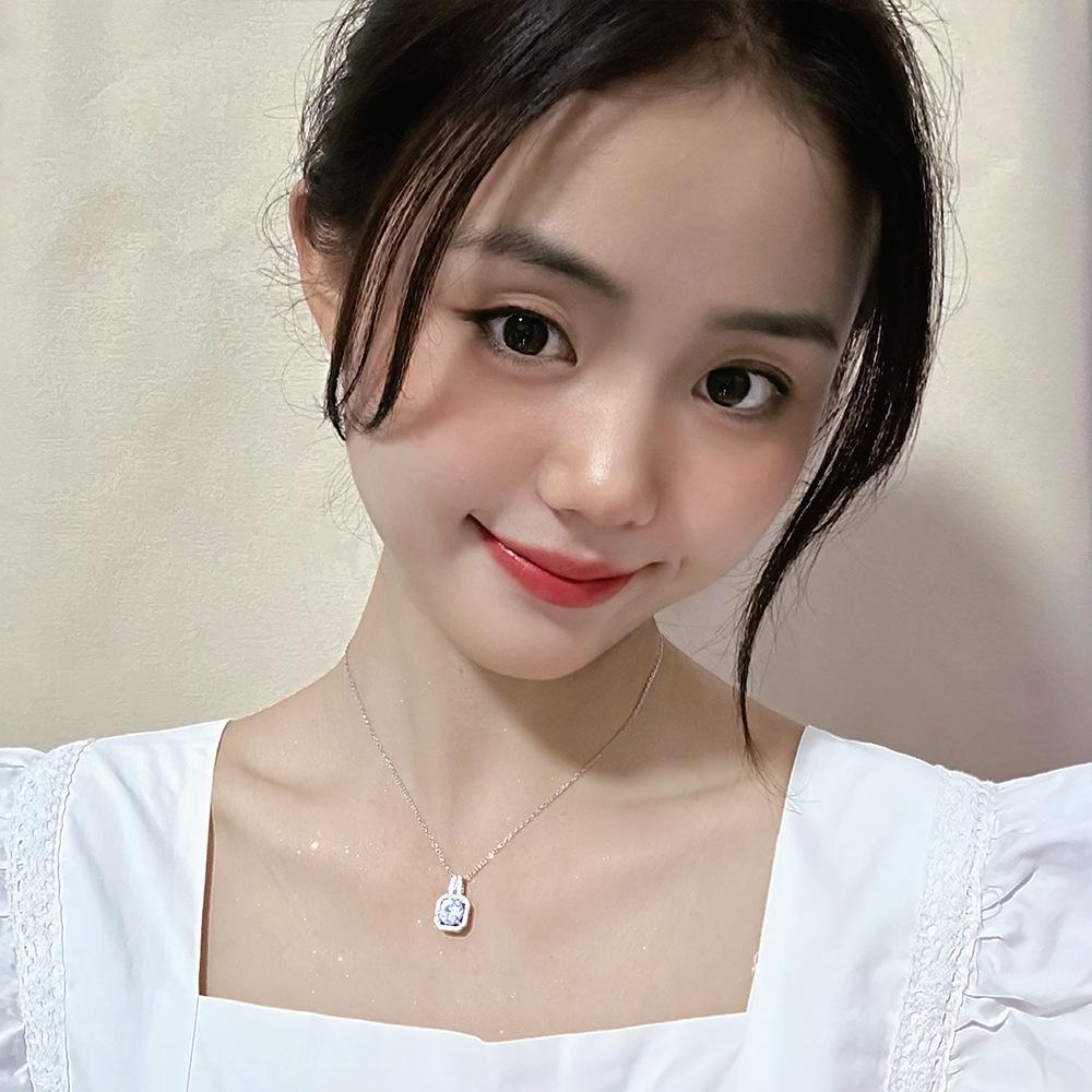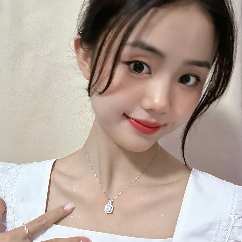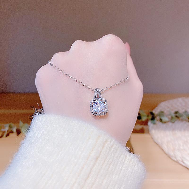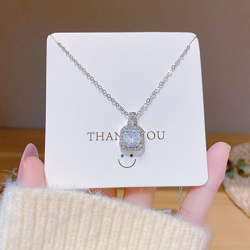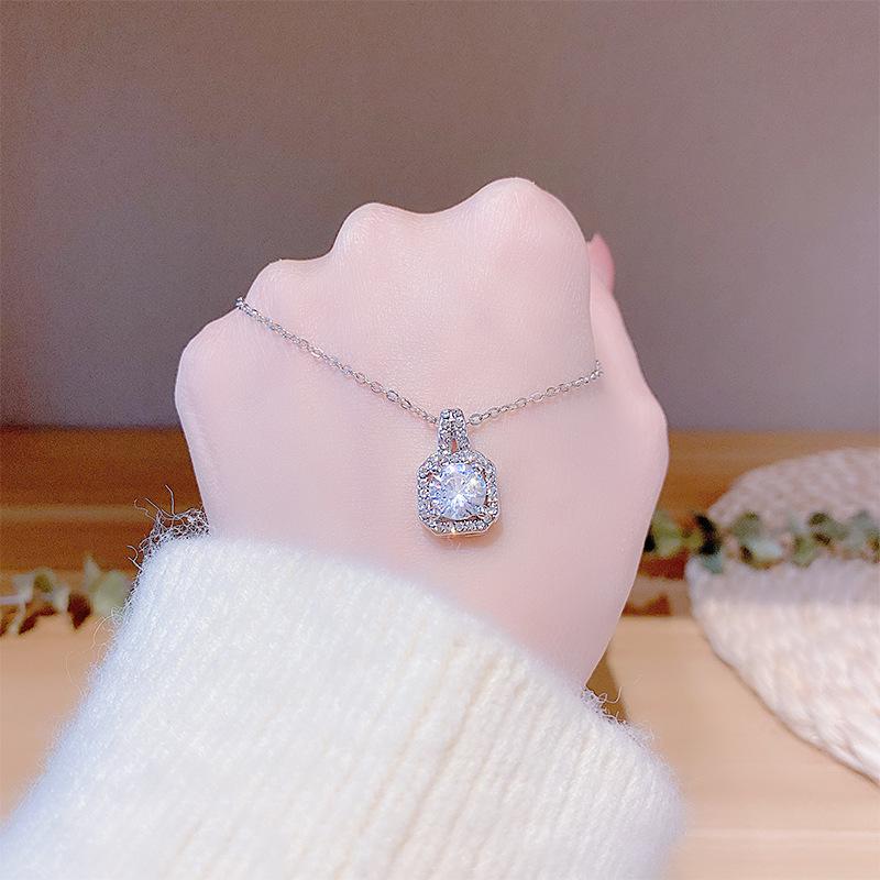 Collar de Acero de Titanio Moda Corea del Sur Simple Elegante Zircón Colgante Diamante Cuadrado Nicho Popular en Internet Combinable Cadena Clavícula Regalo para Mujeres