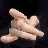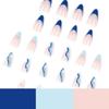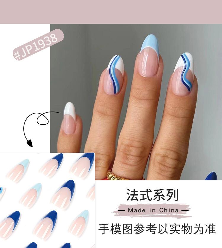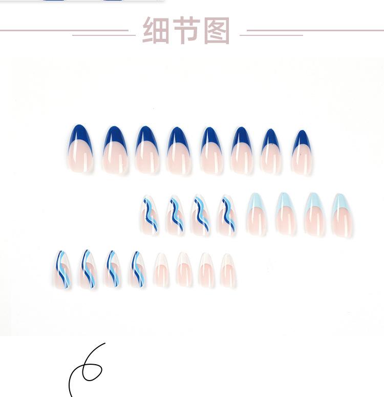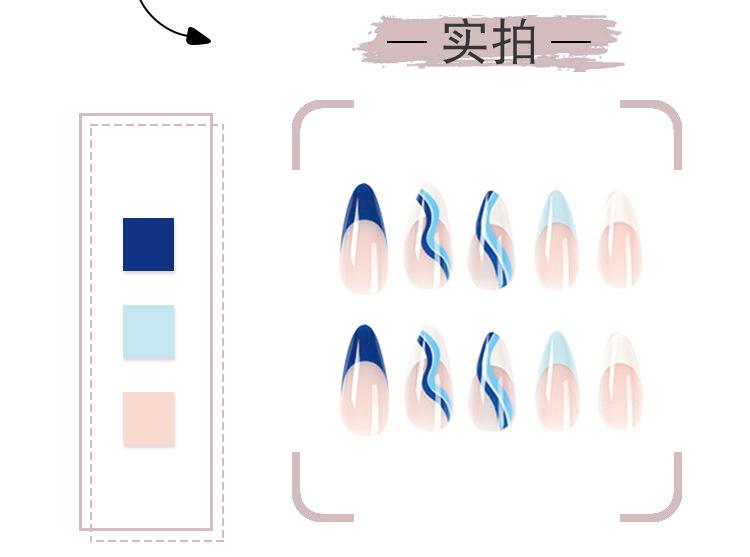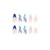 Parche para decoración de uñas con contraste de color azul y blanco, diseño de ondas francesas, venta al por mayor, uñas largas y desmontables