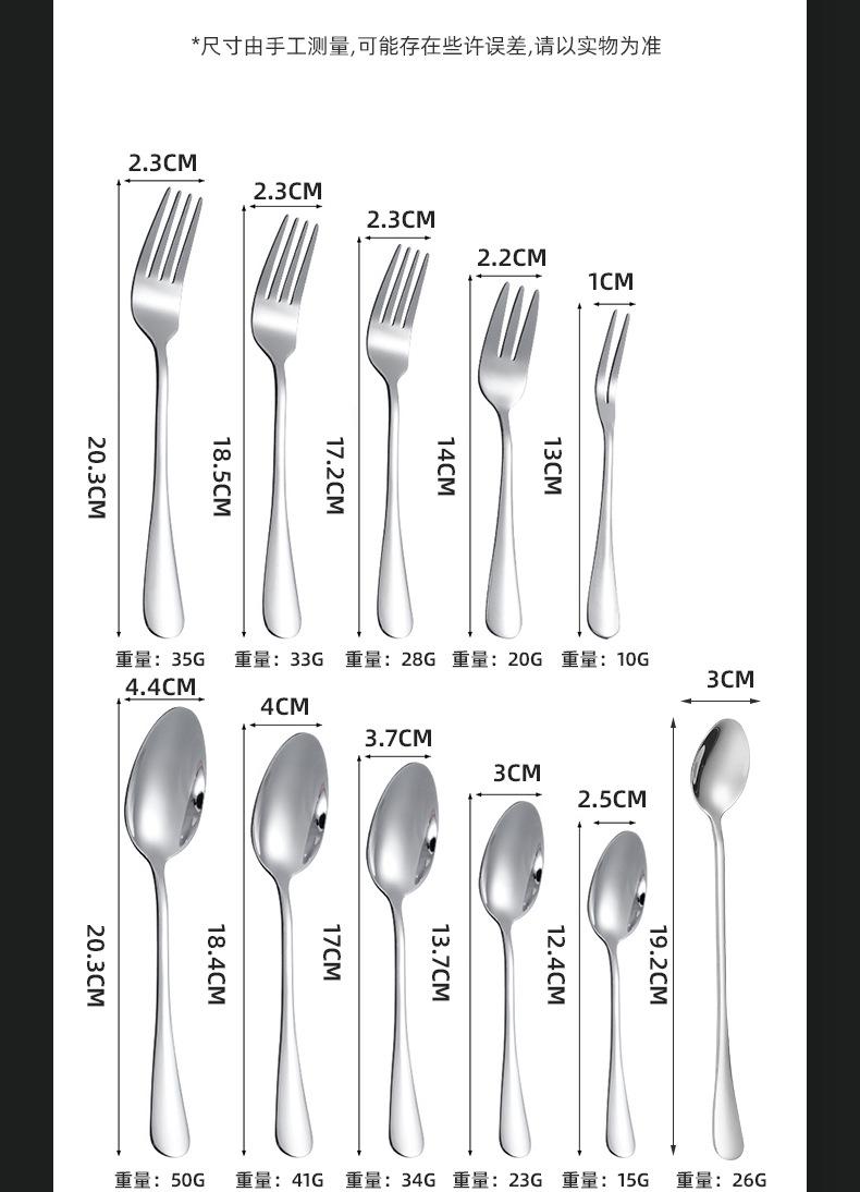 Cuchillo, tenedor y cuchara de acero inoxidable Vajilla occidental 1010 Vajilla para bistec de hotel Cuchara de postre para el hogar Cuchillo, tenedor y cuchara de múltiples especificaciones