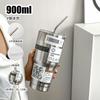 Steel color + cup lid + stainless steel straw + straw brush + 10 milk tea stickers, White + cup lid + stainles...