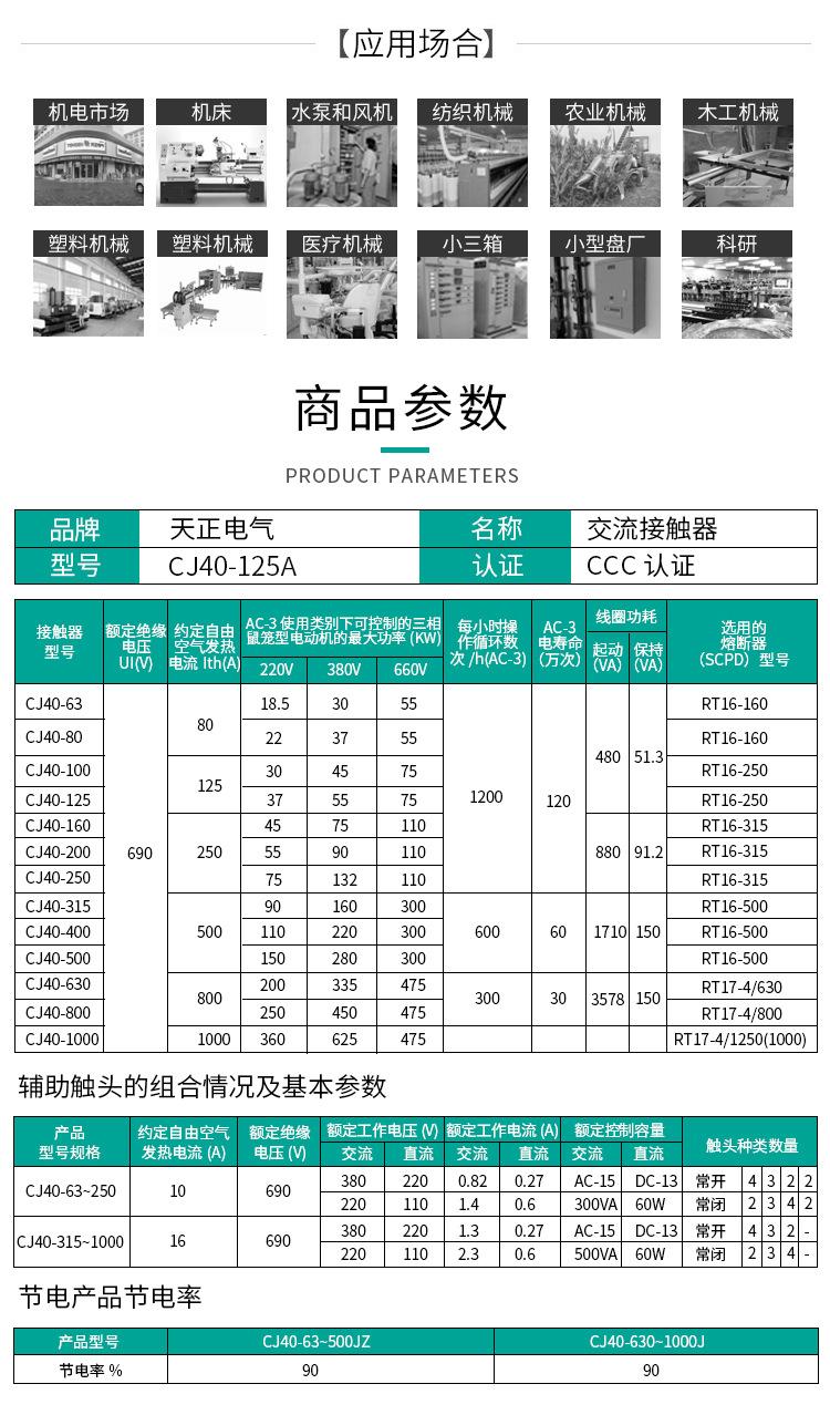 CJ40-125A 220V, CJ40-125A 380V, CJ40-125A 220V four open two closed