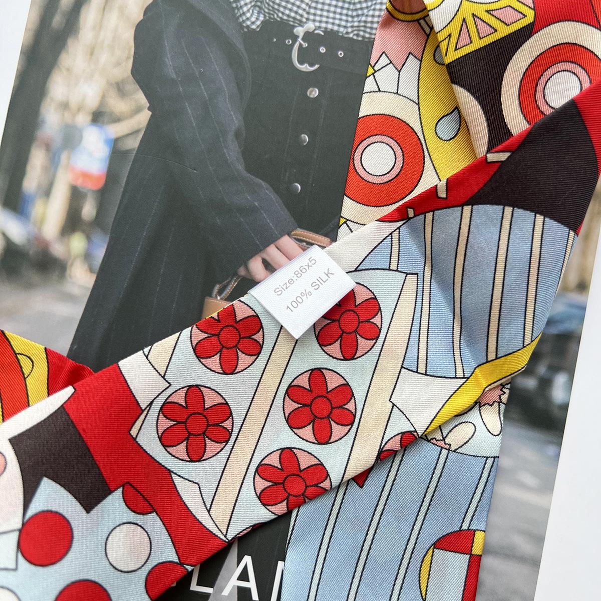 Bufanda de seda larga para mujer, nueva bufanda de verano, pequeña, con estampado francés, para todo tipo de ocasiones, profesional, venta al por mayor