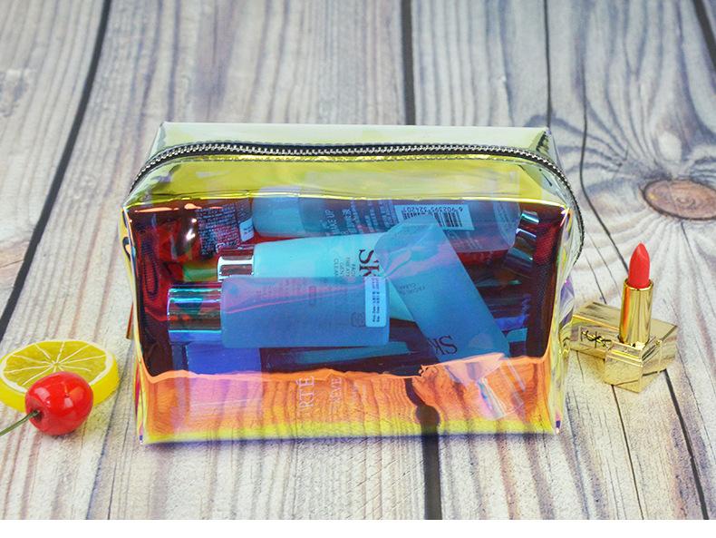 Bolsa de cosméticos transparente con colores mágicos y tendencia de moda, gran capacidad, estilo Ins, bolsa de aseo con valor de color alto, bolsa de almacenamiento de cosméticos