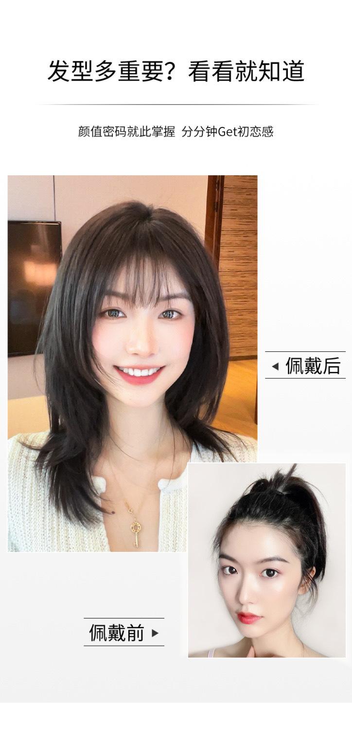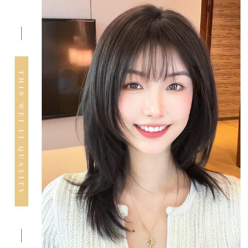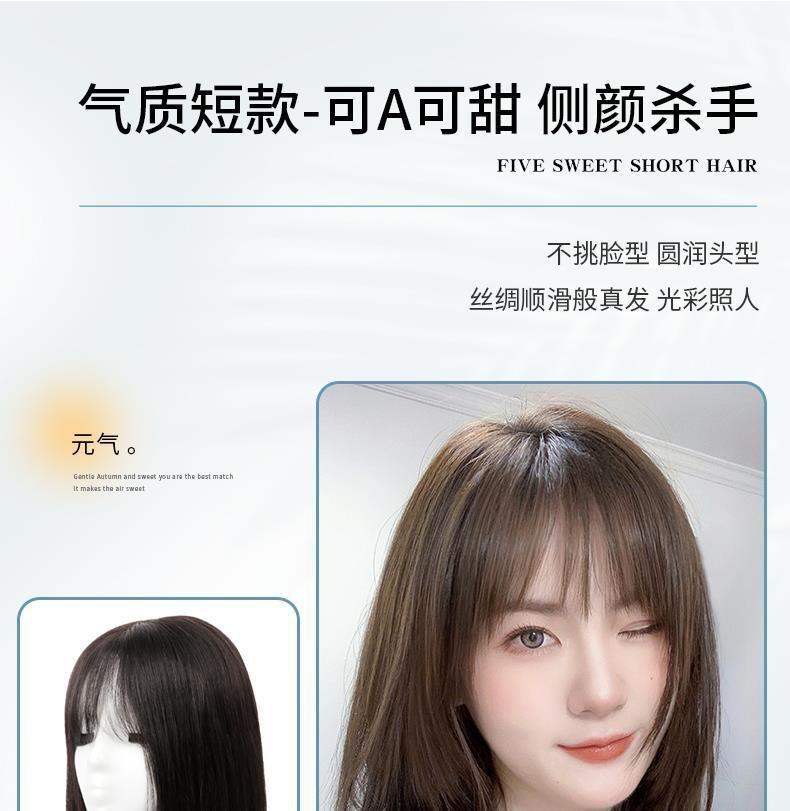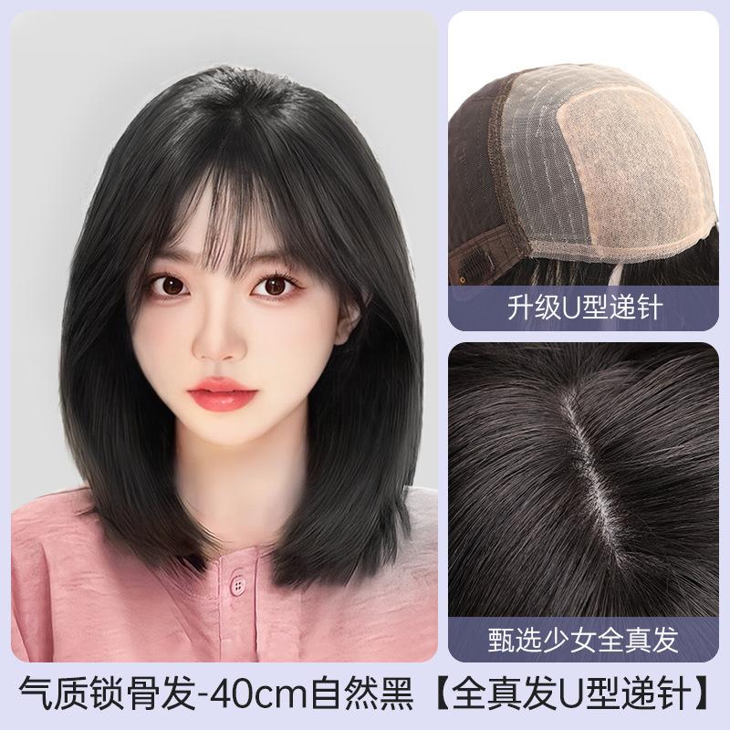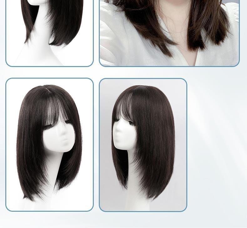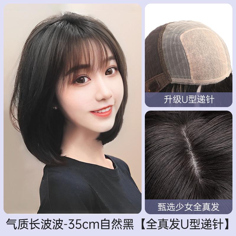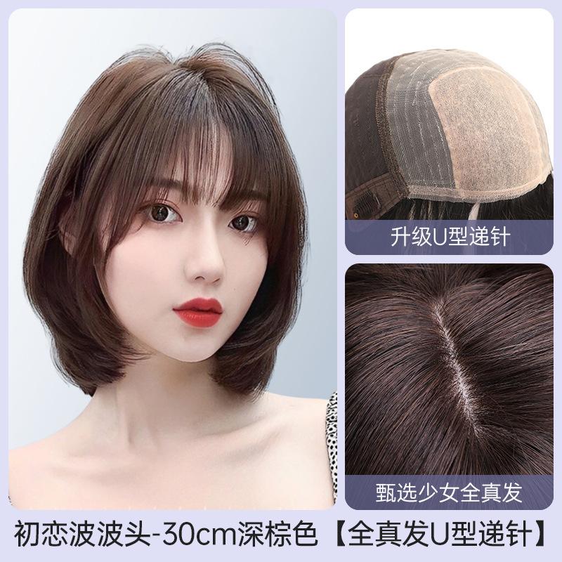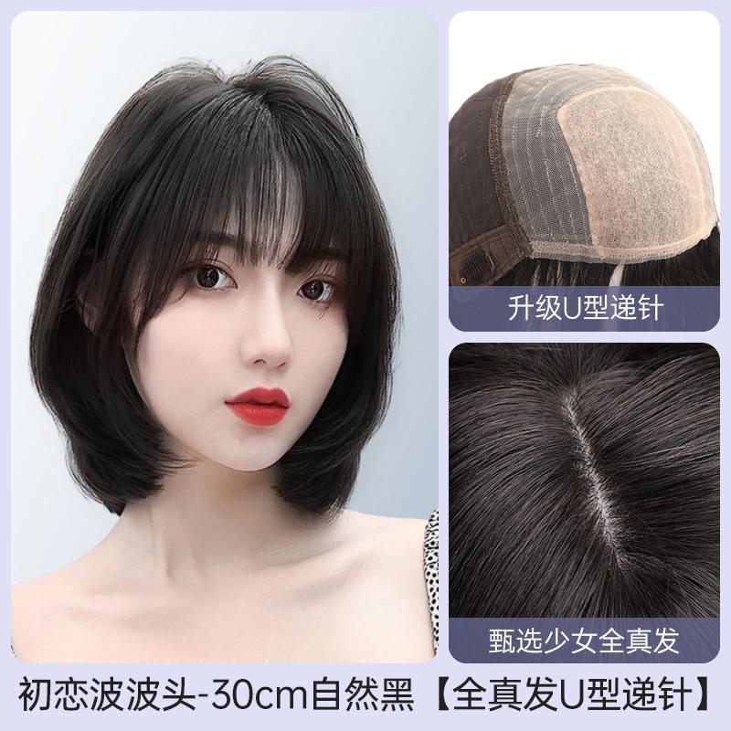 Peluca Xuchang con cobertura total para la cabeza, cabello real, moda, ondas, belleza, peluca de cabello corto y liso para mujeres jóvenes y hermosas, cubierta para la cabeza