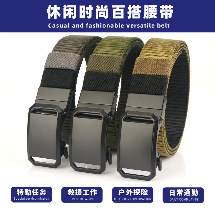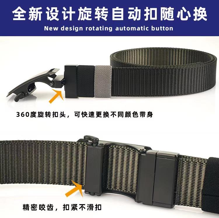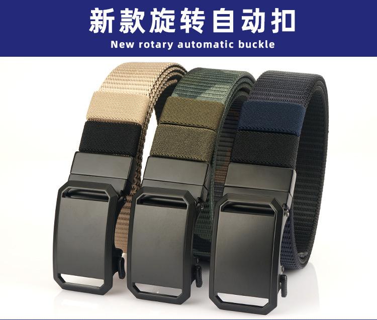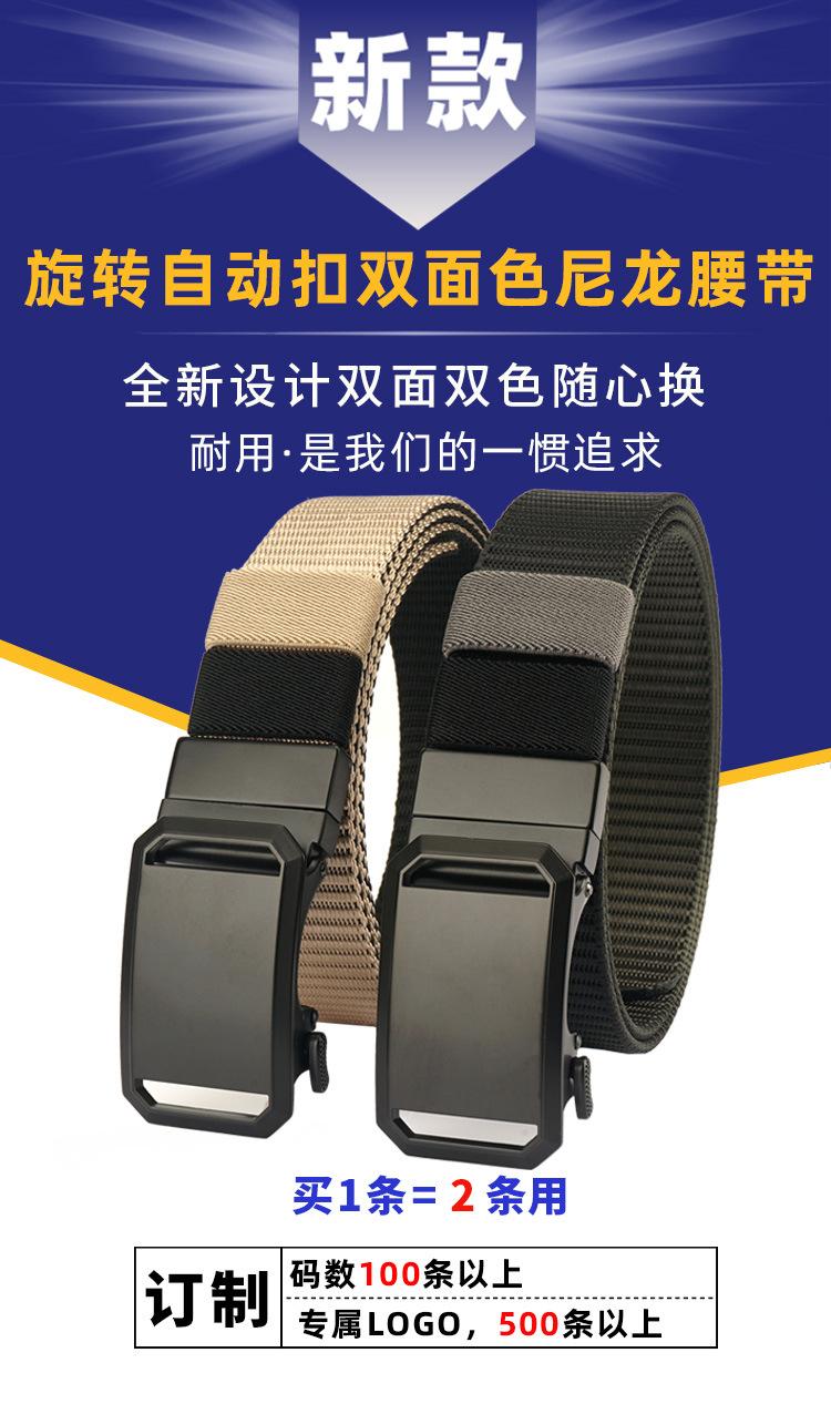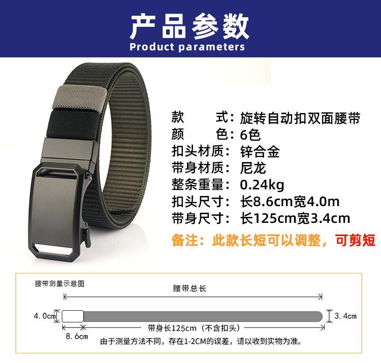 Nuevo Cinturón de Nailon Real de Doble Cara con Hebilla Automática Giratoria para Hombre, Casual, Sencillo, Tejido, de Lona