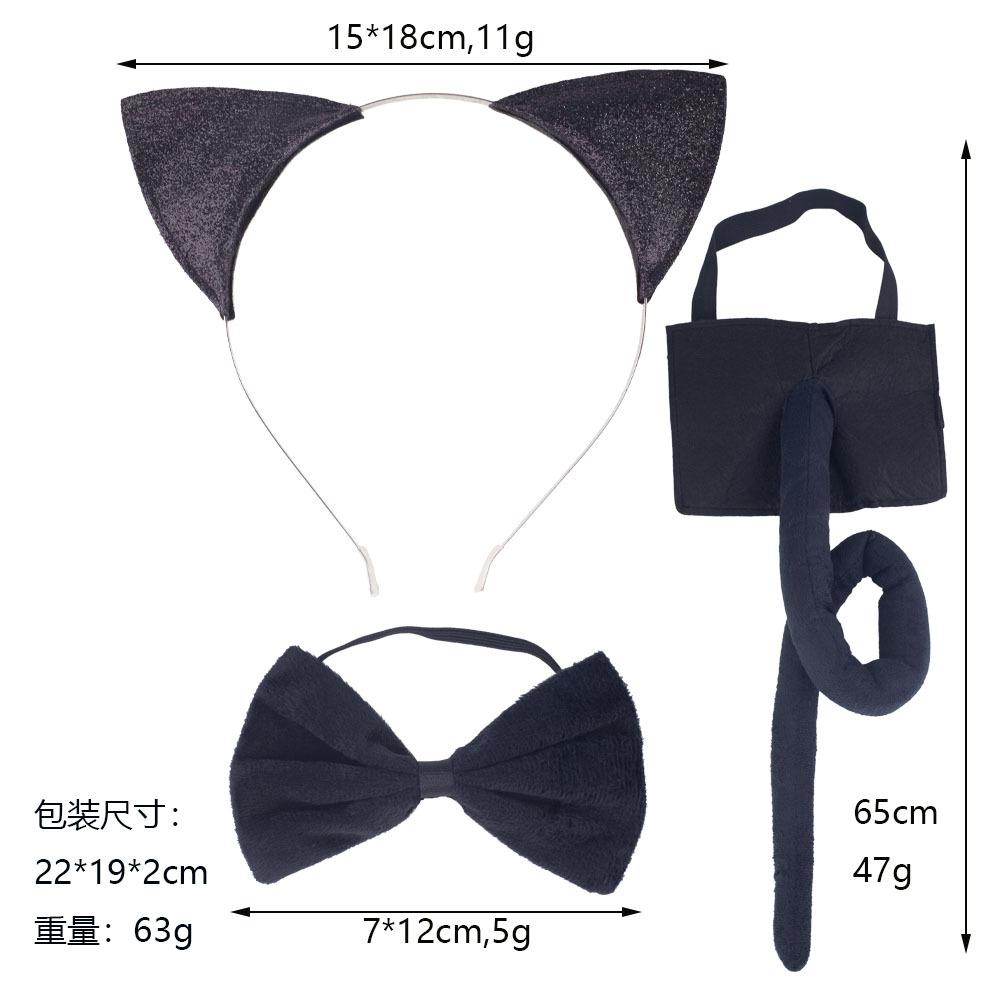Platinum iron head buckle Glitt black cat ear three-piece set [55CM imitation super felt black tail]]