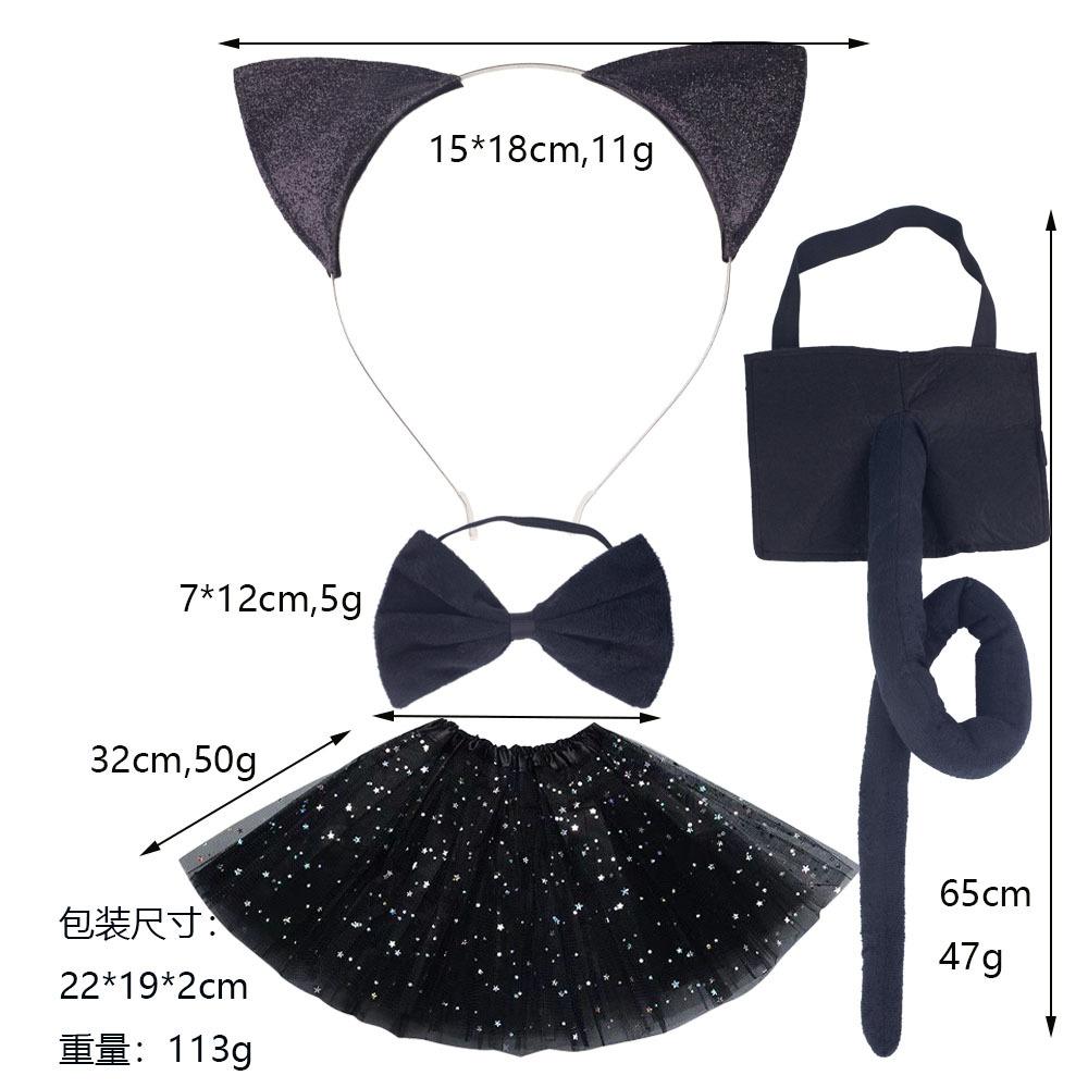 Platinum iron head buckle Glitt black cat ear three-piece set [55CM imitation super felt black tail] black star gauze skirt