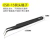 Nombre del producto: Pinzas negras antioxidantes y antiestáticas, pinzas de punta plana y codo de punta recta.