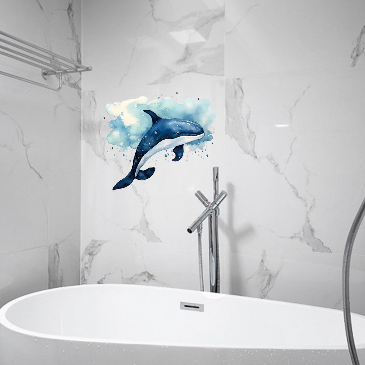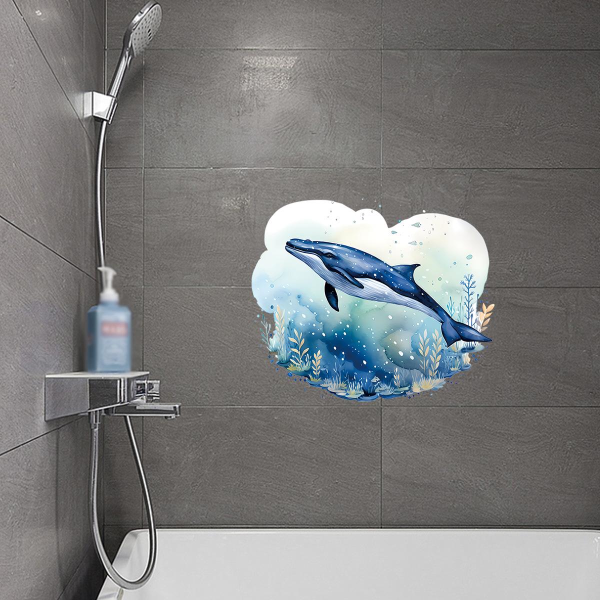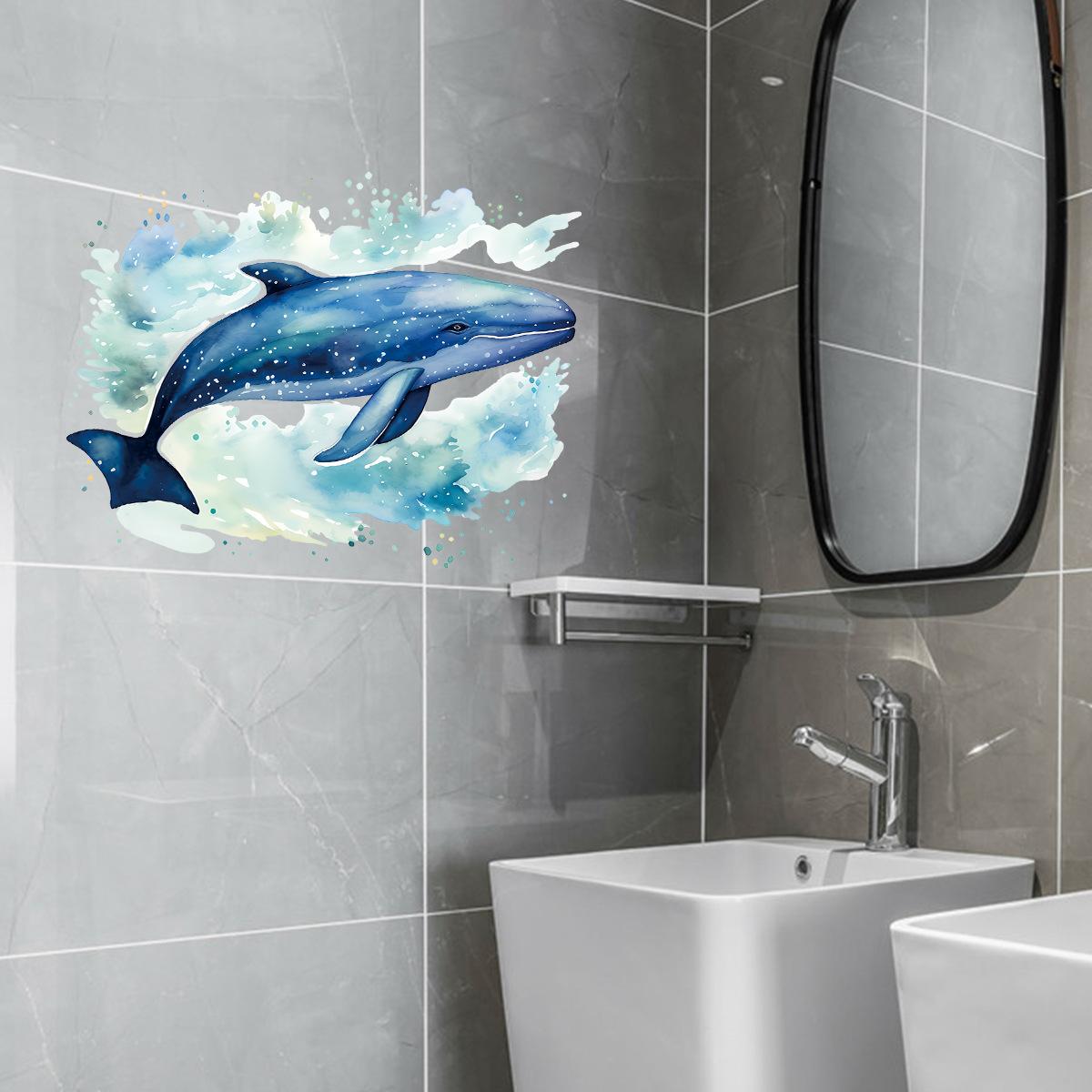 Pegatinas decorativas de ballena marina para baño, creativas y transfronterizas, para la pared de la habitación, autoadhesivas, impermeables, al por mayor