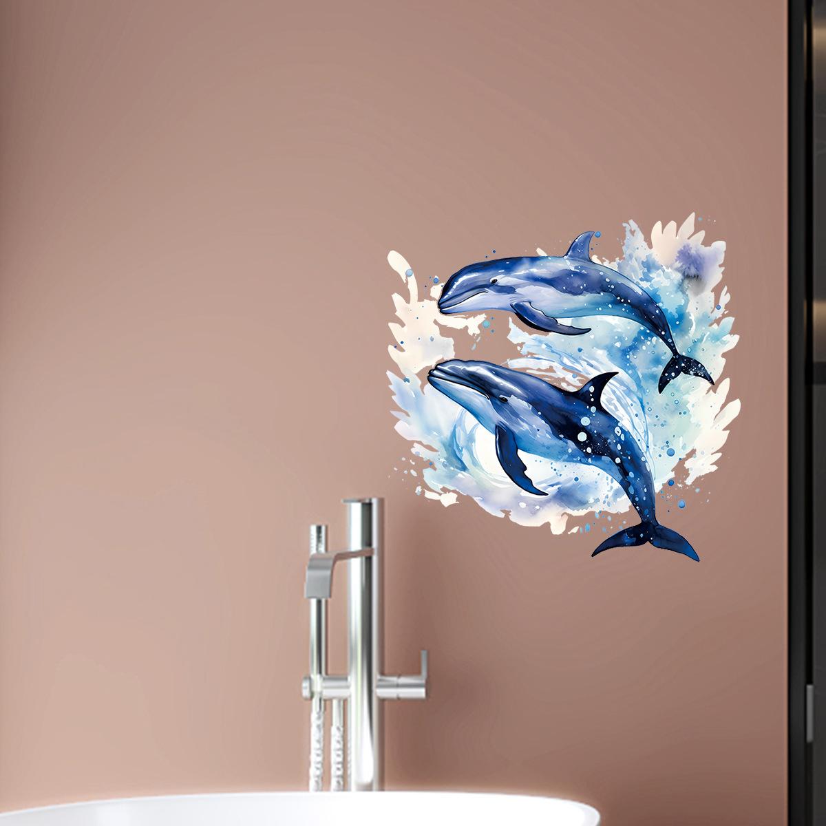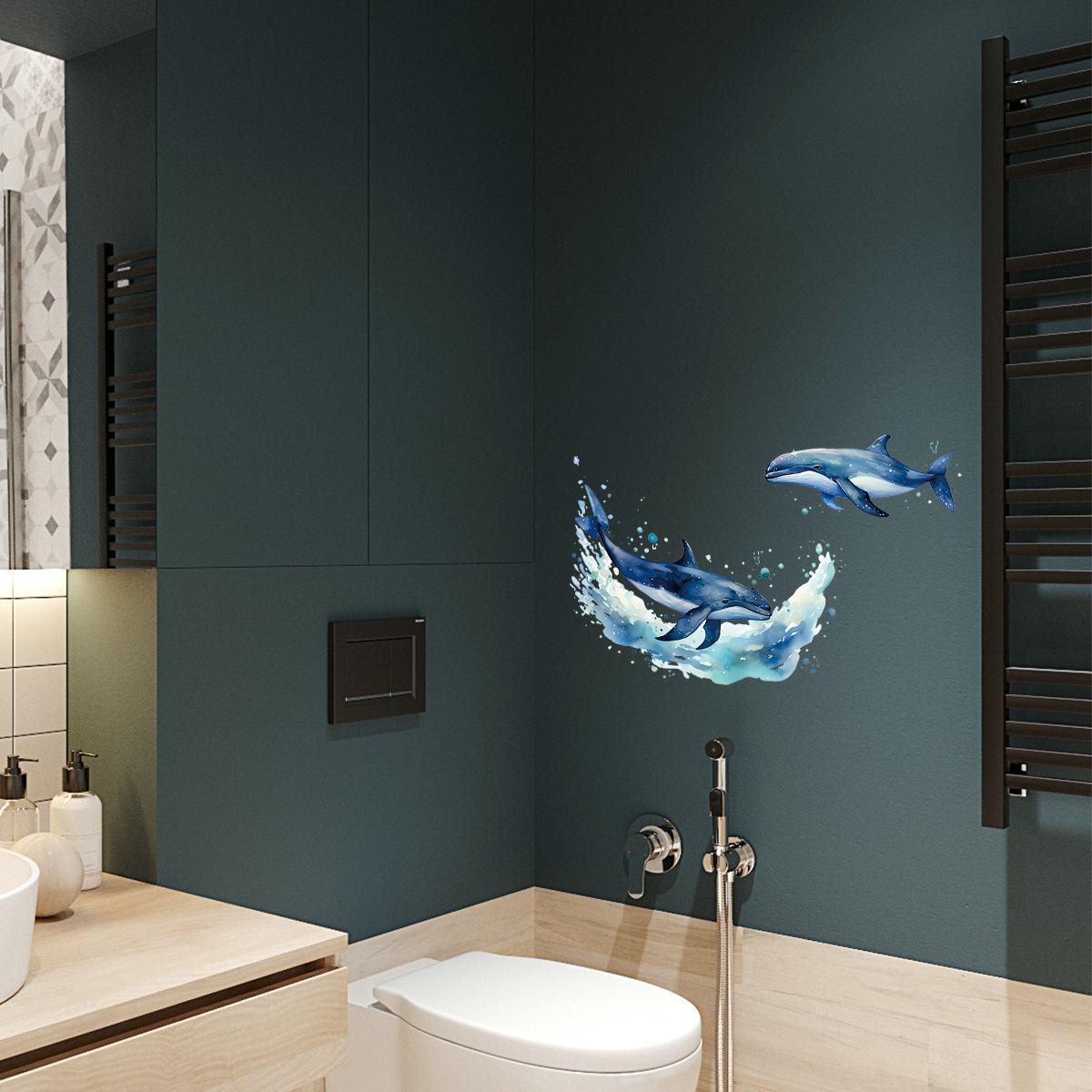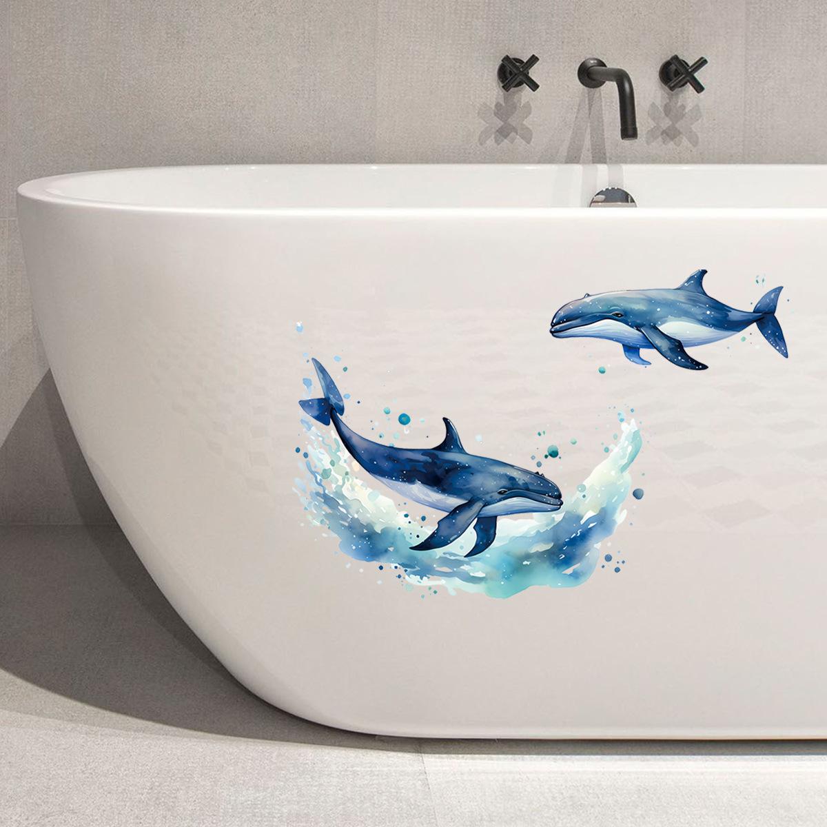 Pegatinas decorativas de ballena marina para baño, creativas y transfronterizas, para la pared de la habitación, autoadhesivas, impermeables, al por mayor