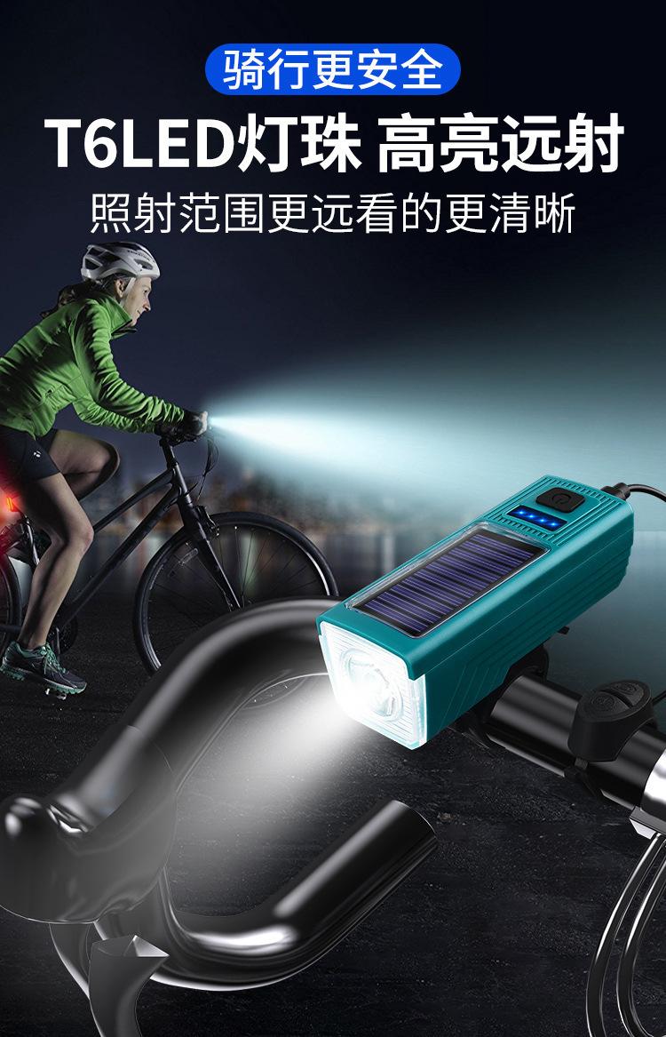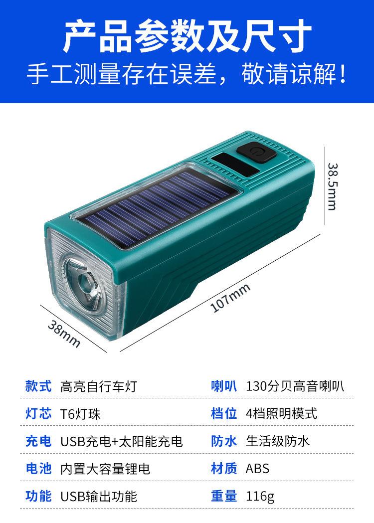 Compra Luz solar para bicicleta con bocina y carga USB, iluminación nocturna para ciclismo de montaña, equipo para montar en bicicleta al por mayor en Joom.pro