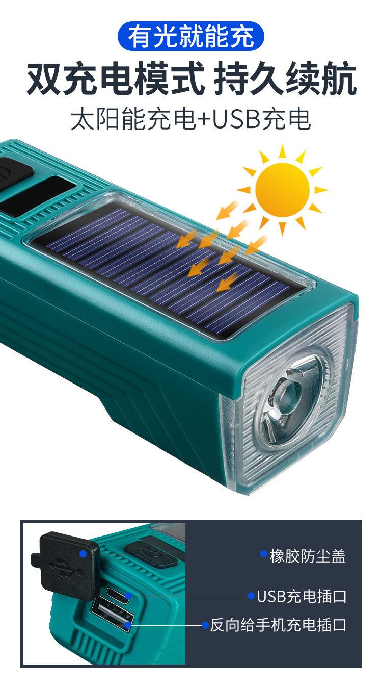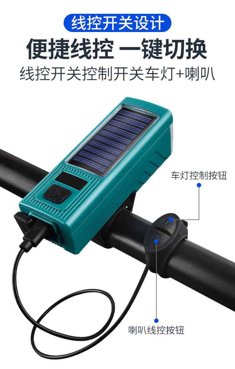 Luz solar para bicicleta con bocina y carga USB, iluminación nocturna para ciclismo de montaña, equipo para montar en bicicleta
