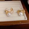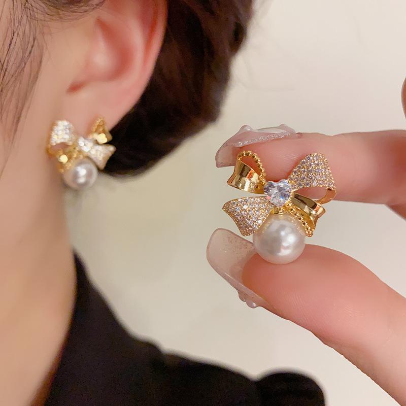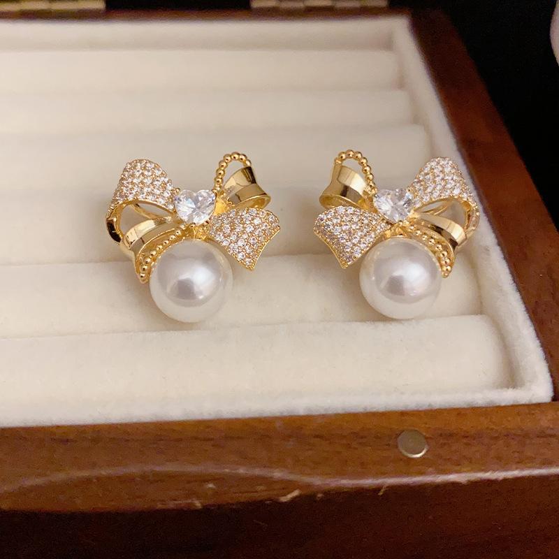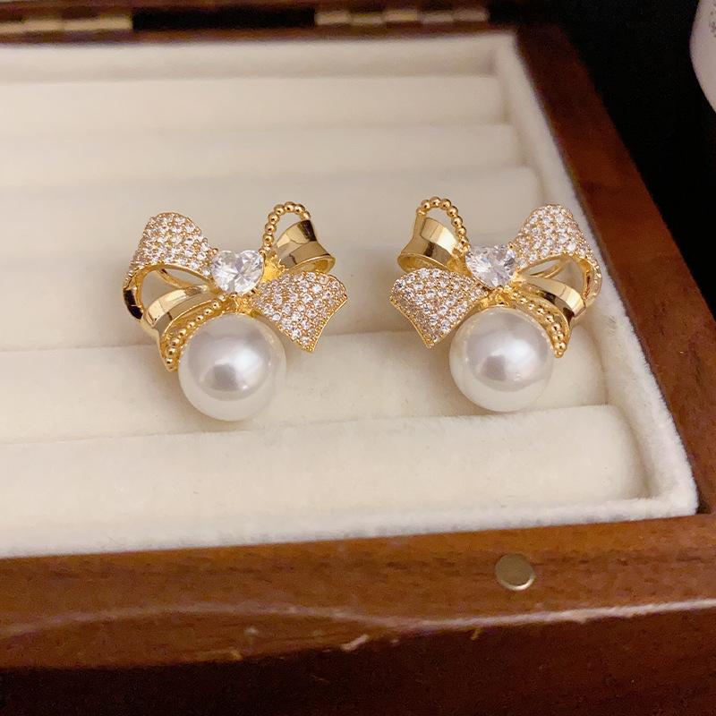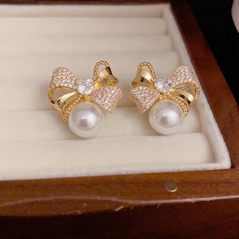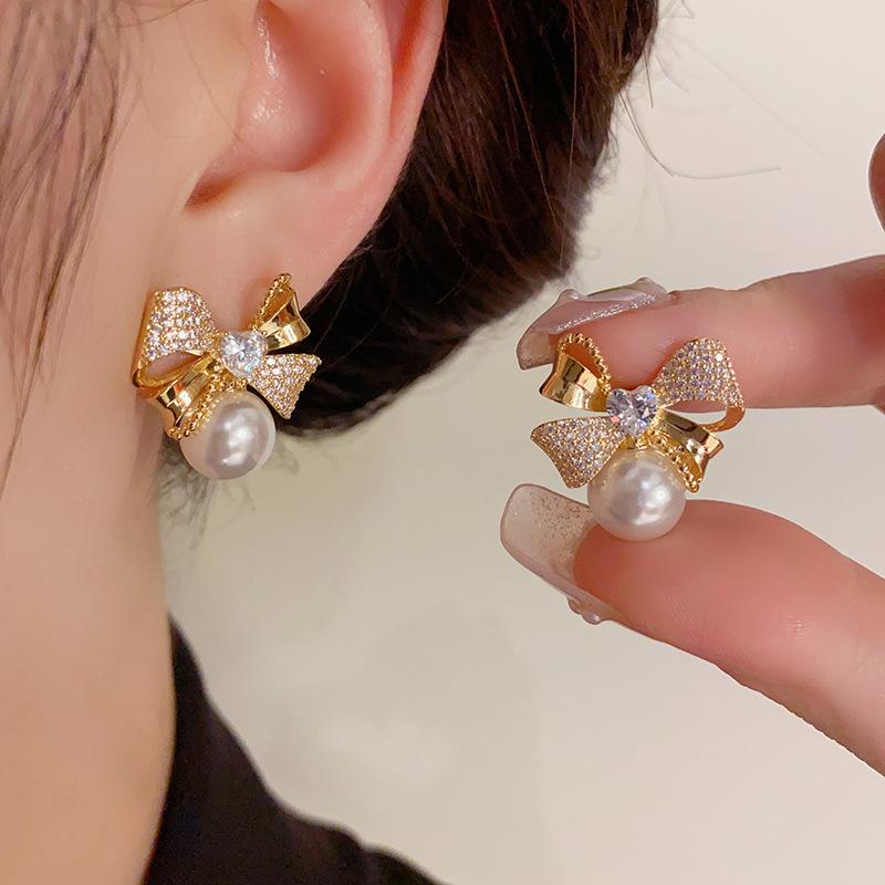 Pendientes de perlas con lazo de amor de circonita de estilo coreano exquisitos, pendientes de moda dulces con explosiones rojas de Joker para mujer, al por mayor