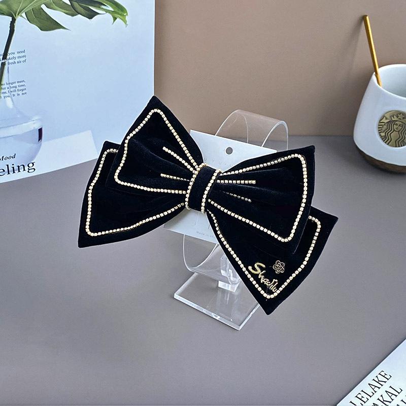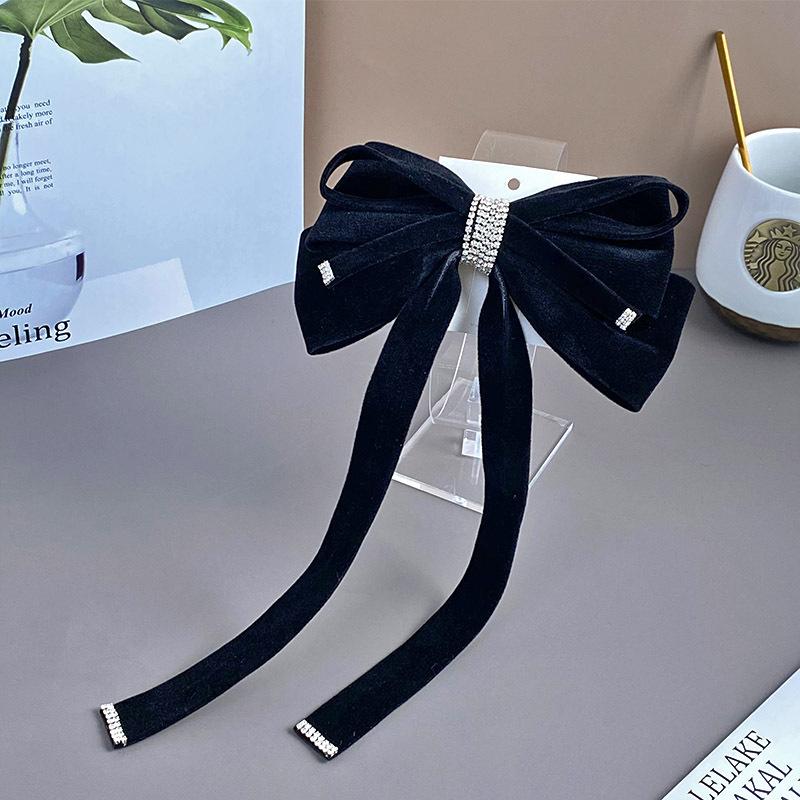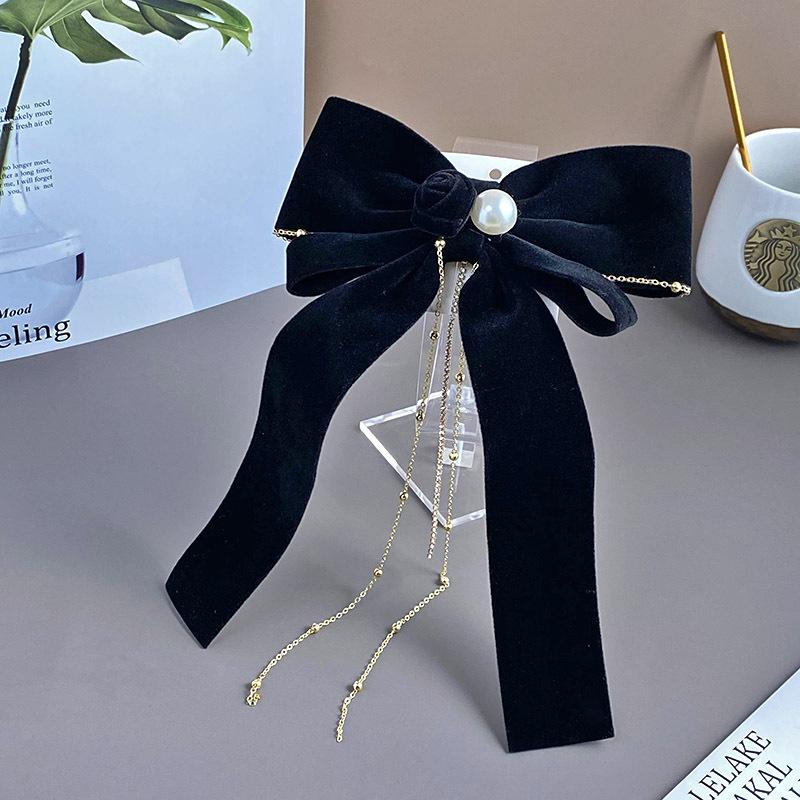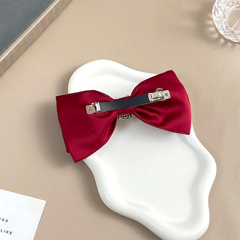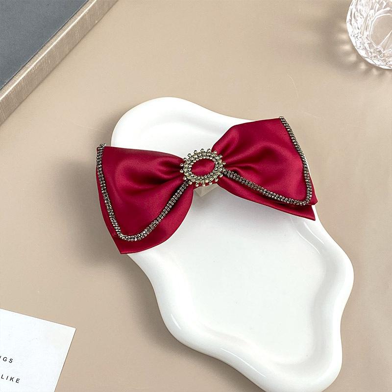 Horquilla de terciopelo rojo con lazo flotante largo para mujer, accesorio para el cabello con borlas de diamantes y pinza de resorte de alta calidad, para la parte posterior de la cabeza, de celebridad de Internet