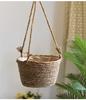 Maceta de paja para colgar, maceta colgante para pared, maceta para flores, decoración del hogar, maceta para flores
