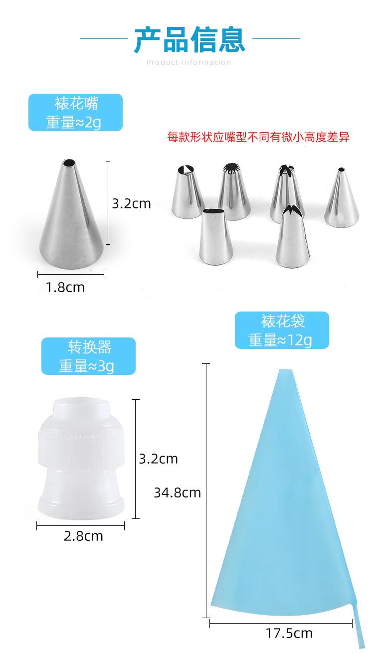 | Juego de herramientas para hornear y decorar Boquilla para manga pastelera de TPU/EVA Boquilla para manga pastelera de acero inoxidable Juego de raspadores de plástico PP |
