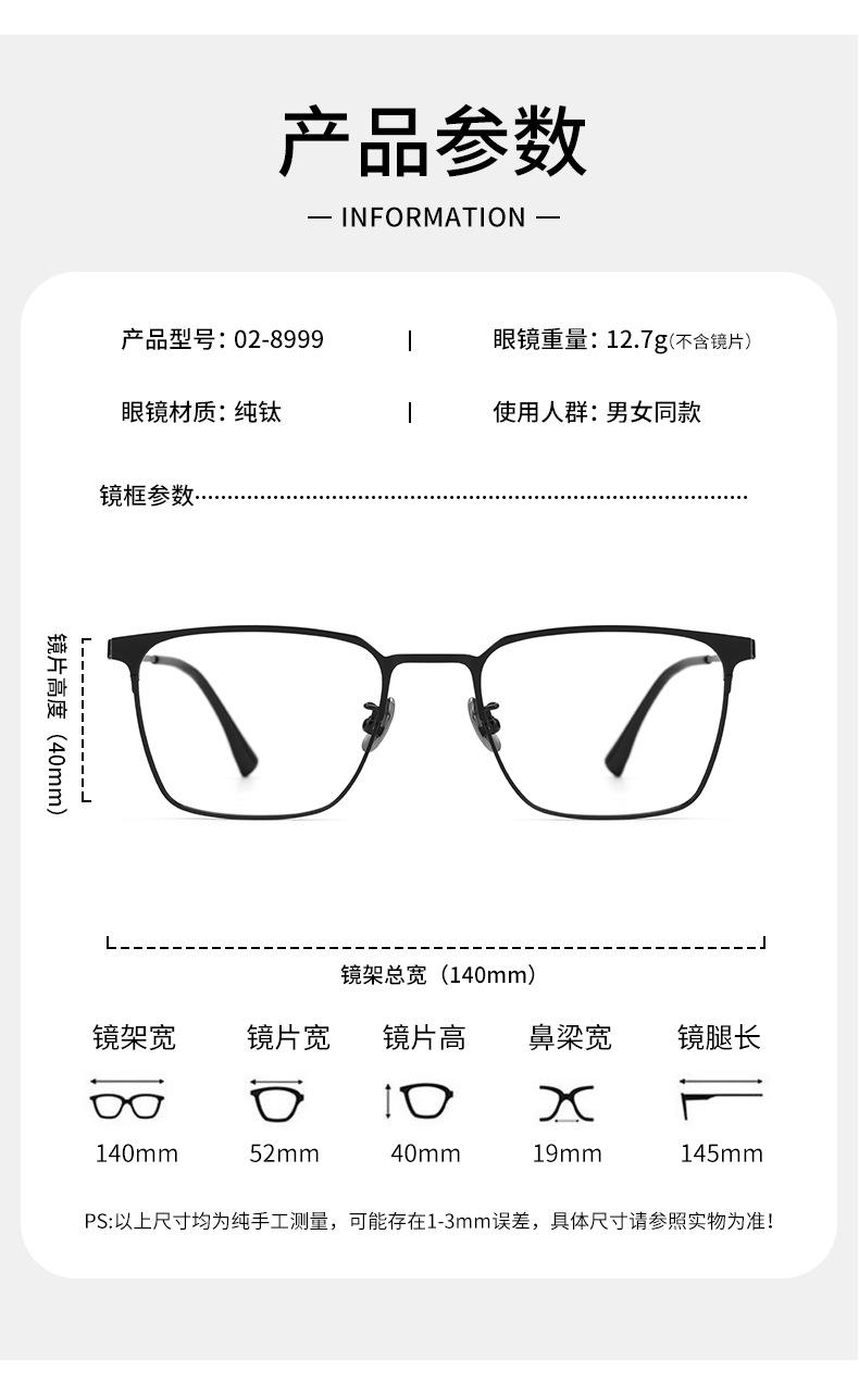 Armazón Retro para Cejas Negocios Gafas para Miopía para Hombre Titanio Ultraligero Titanio Puro Armazón de Gafas Danyang Gafas al por Mayor 8999