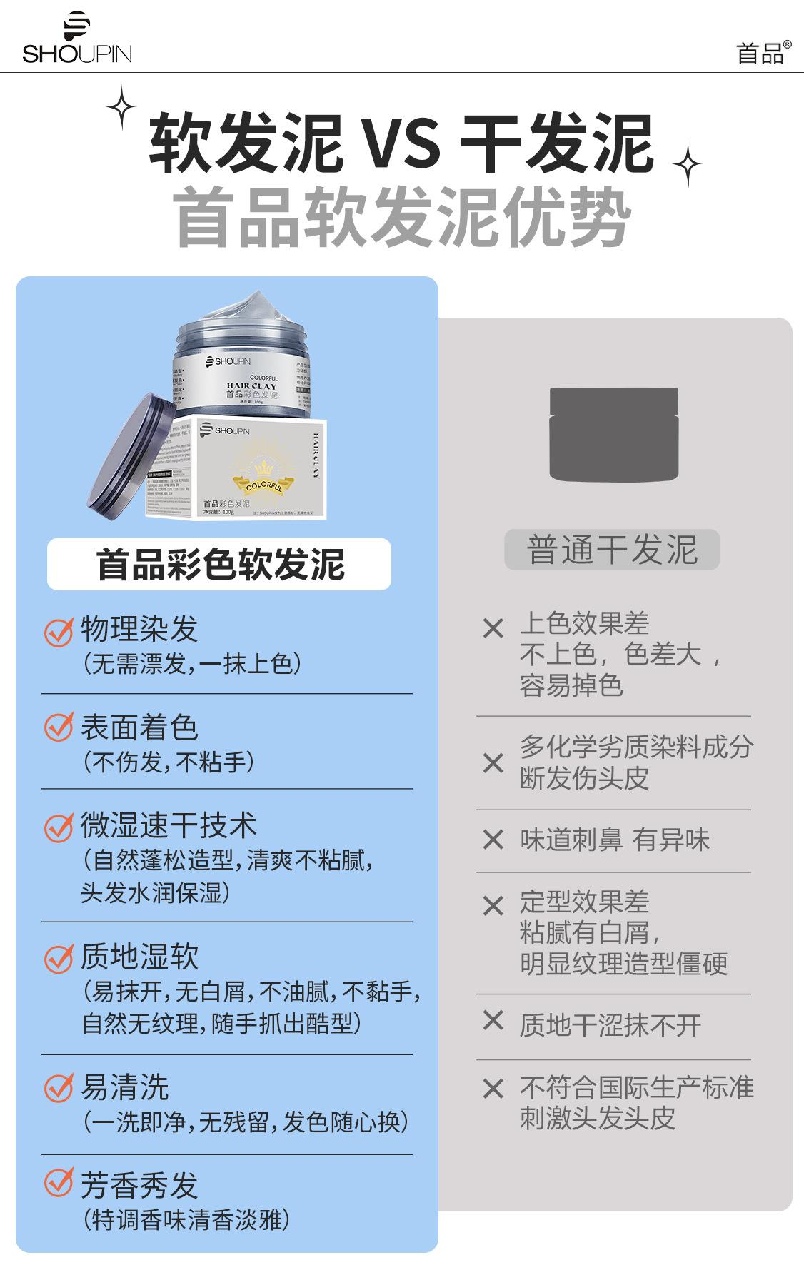El primer barro suave para el cabello, barro para cabello gris abuelita, barro para cabello blanco, gris plateado, peinado moldeador, cera para cabello de colores para hombres y mujeres, degradado opcional multicolor