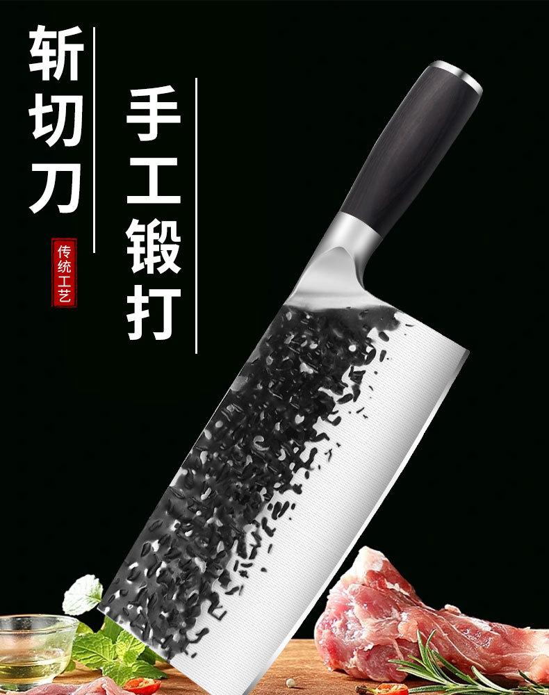 Cuchillo de cocina forjado con patrón de martillo, cuchillo de cocina para cortar huesos, cuchillo de corte de carne afilado de celebridad de Internet, cuchillo de corte sin afilar para chef.
